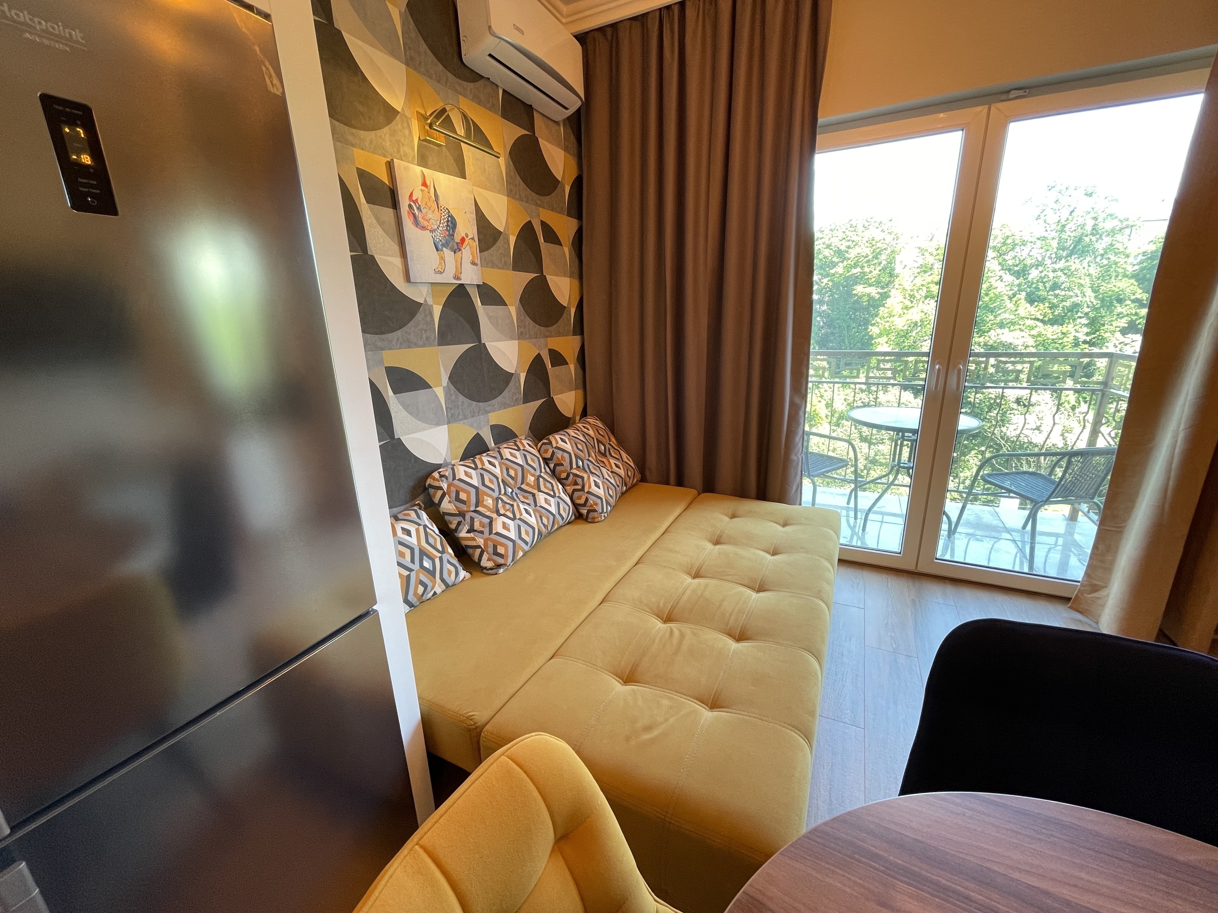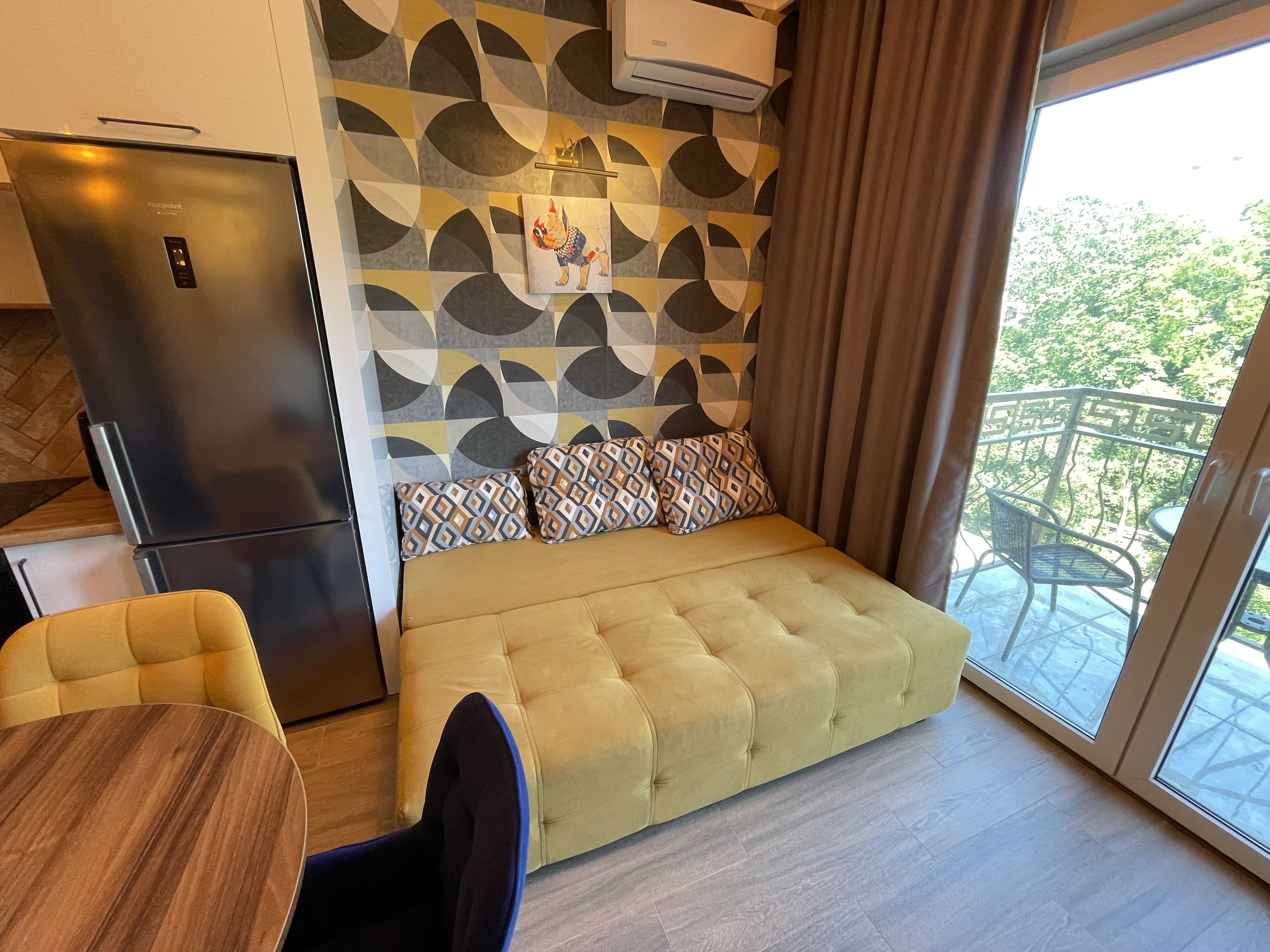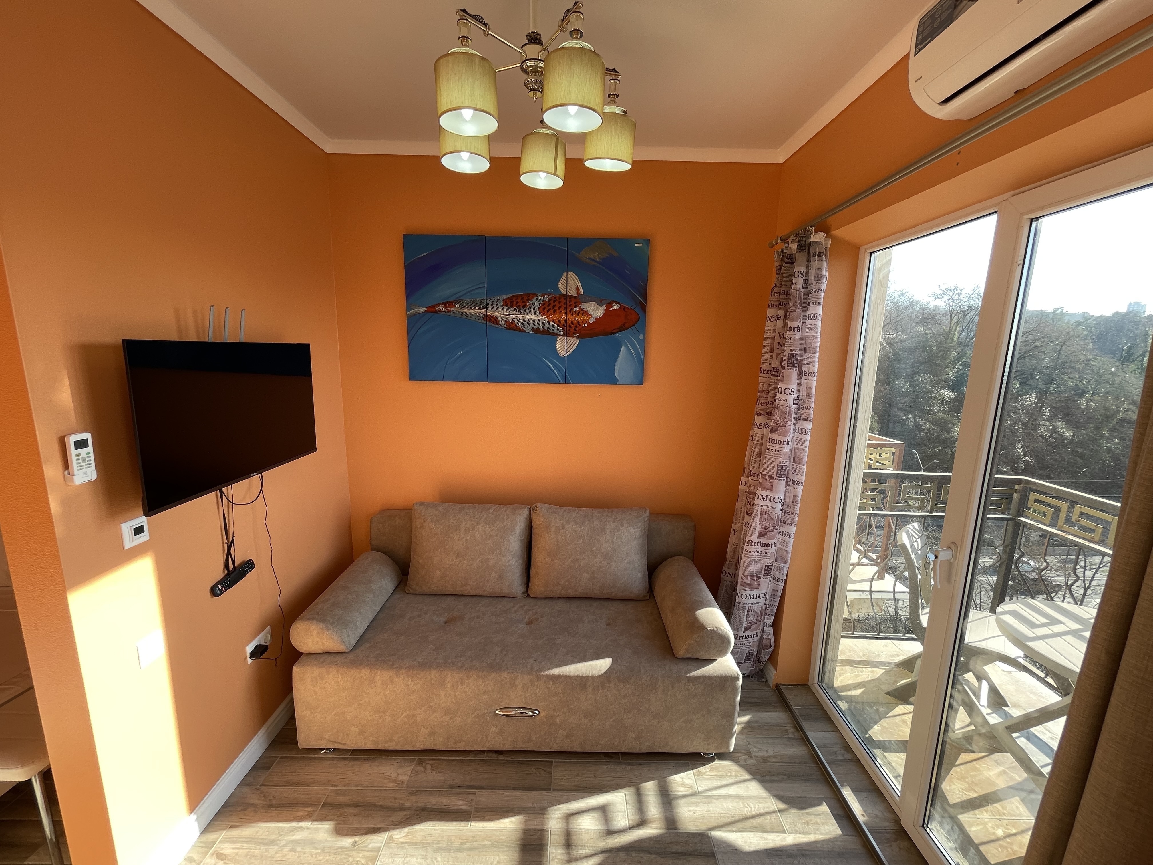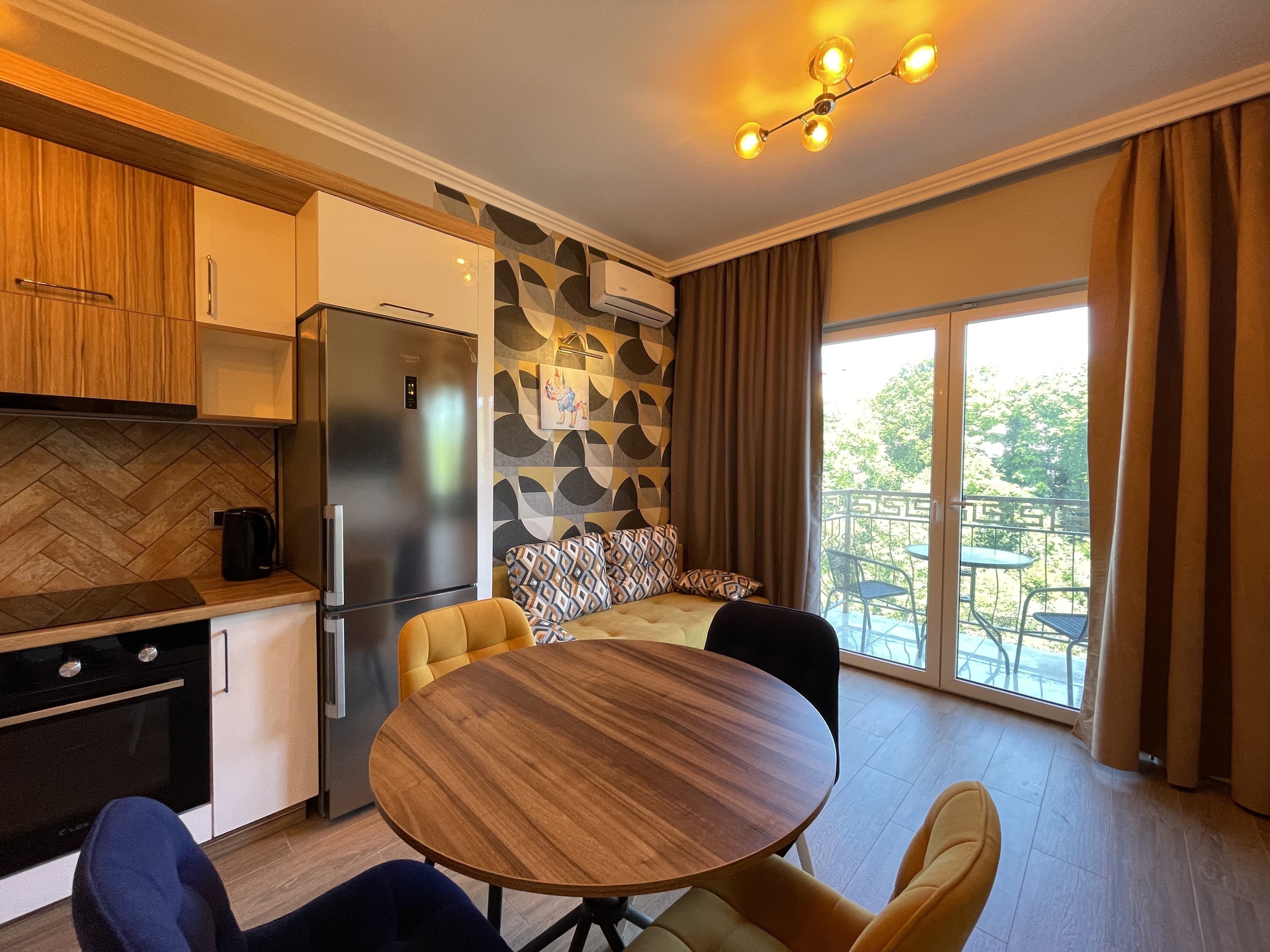 В квартире есть всё необходимое для проживания: холодильник, микроволновка, кухонная плита, свч печь, кондиционер, стиральная машина, Wi-Fi и телевидение.