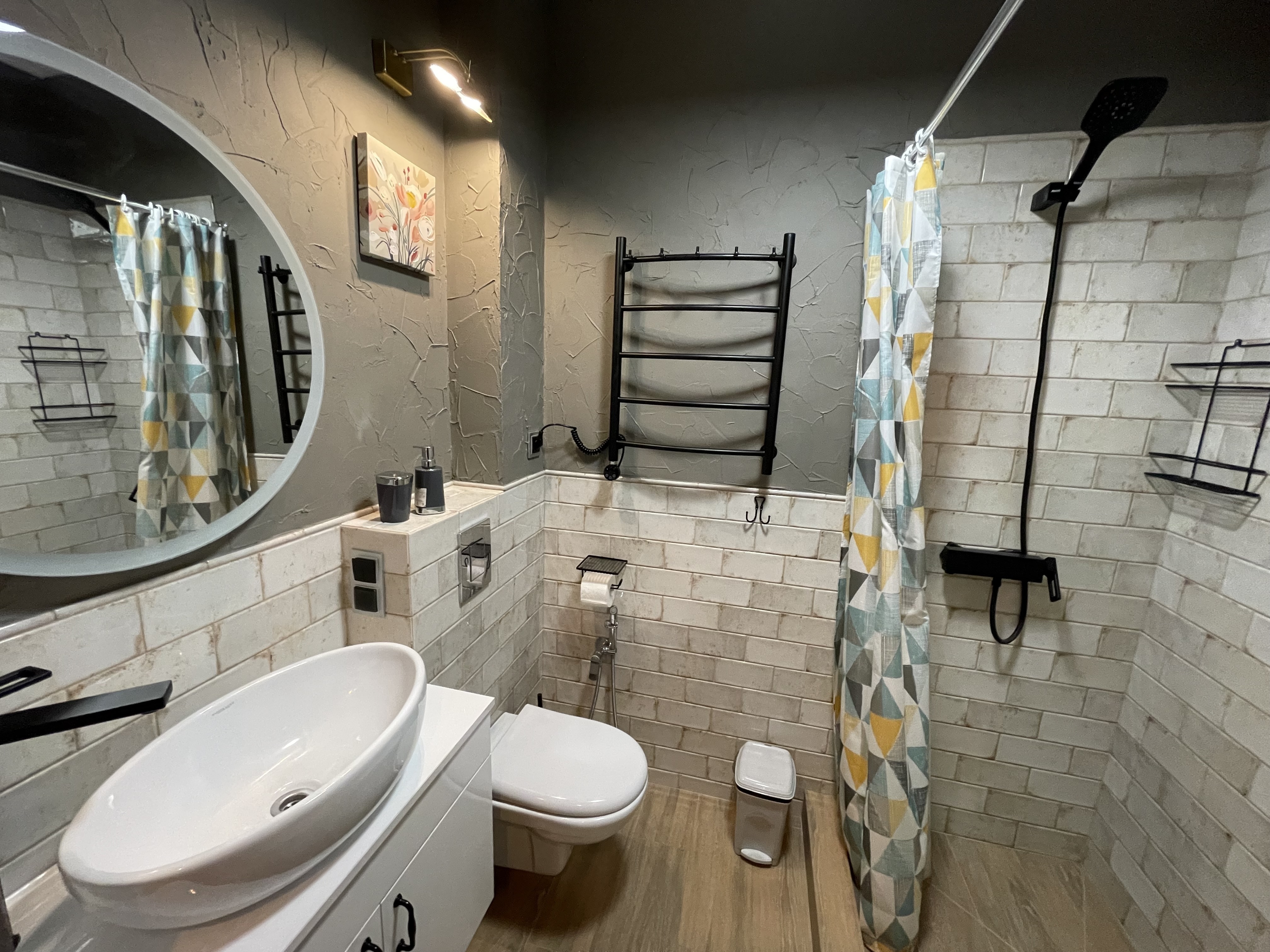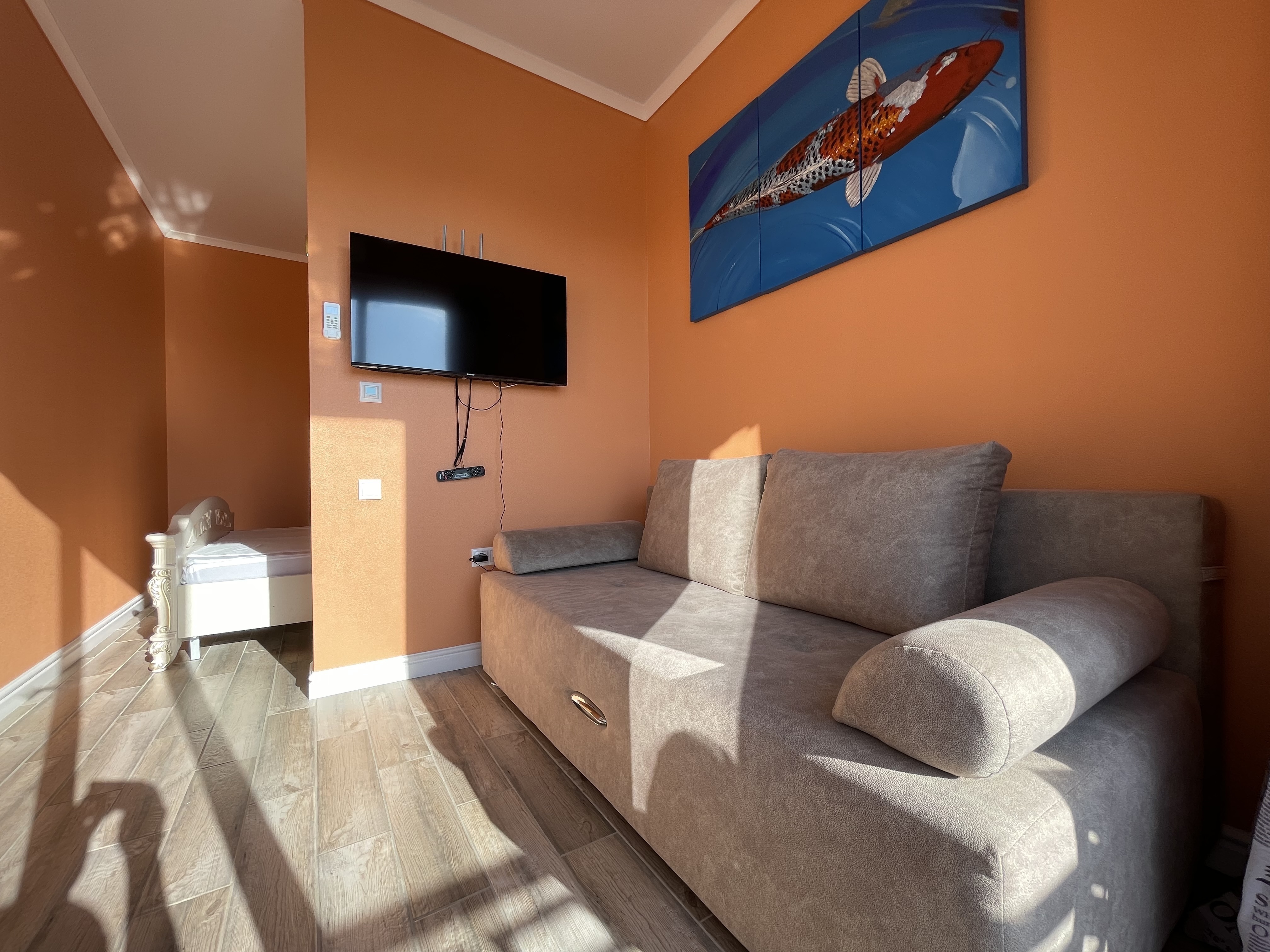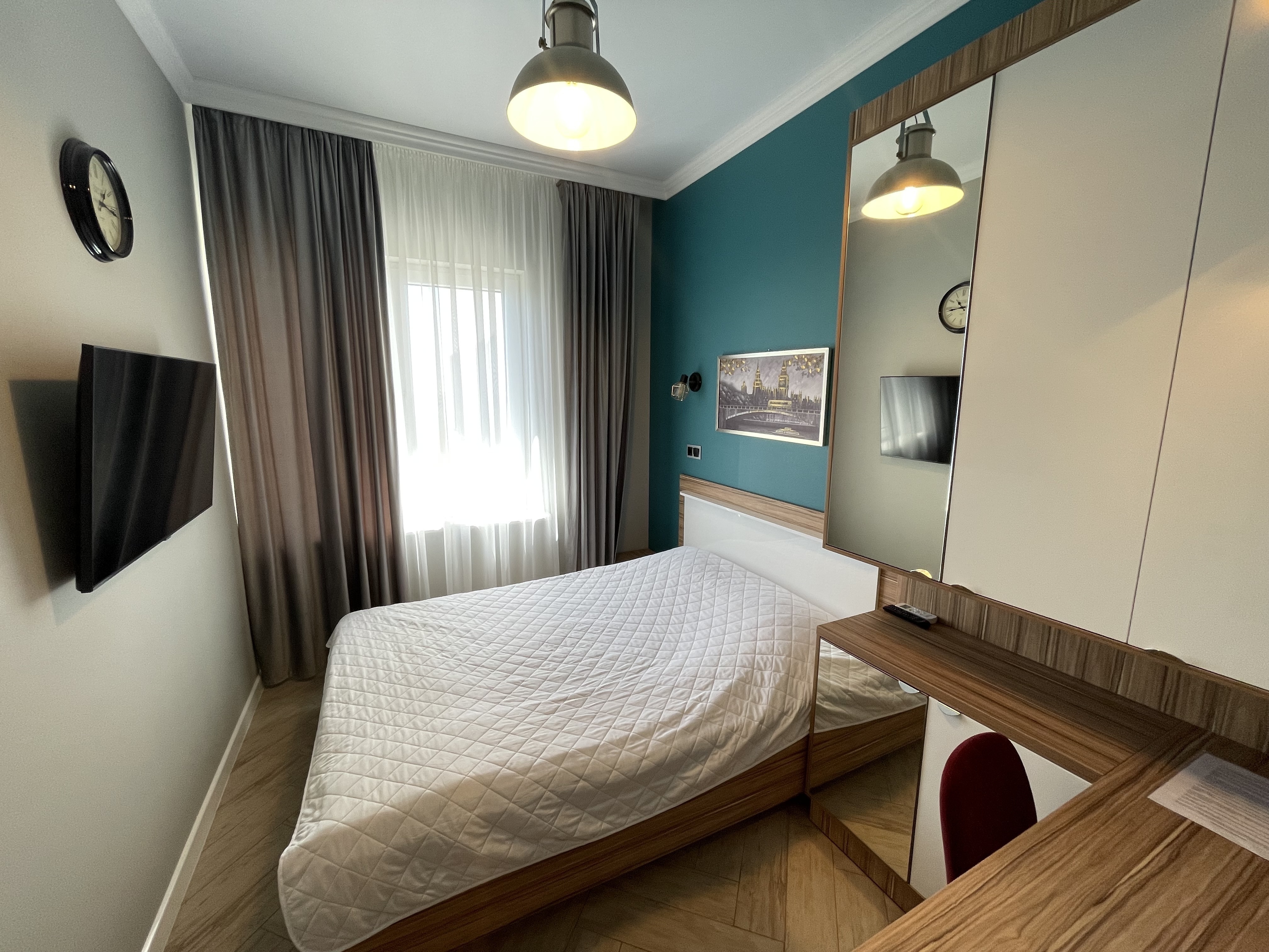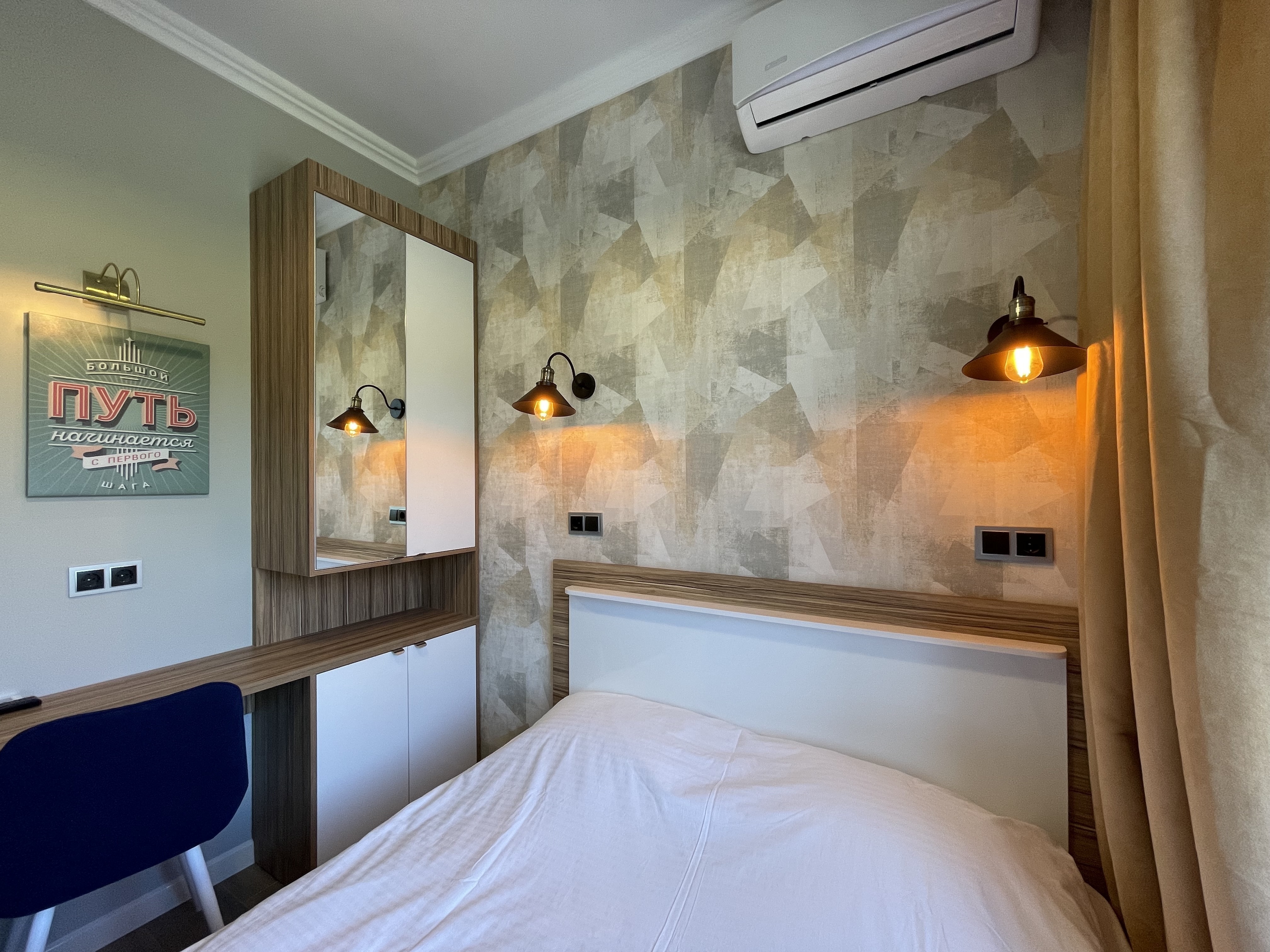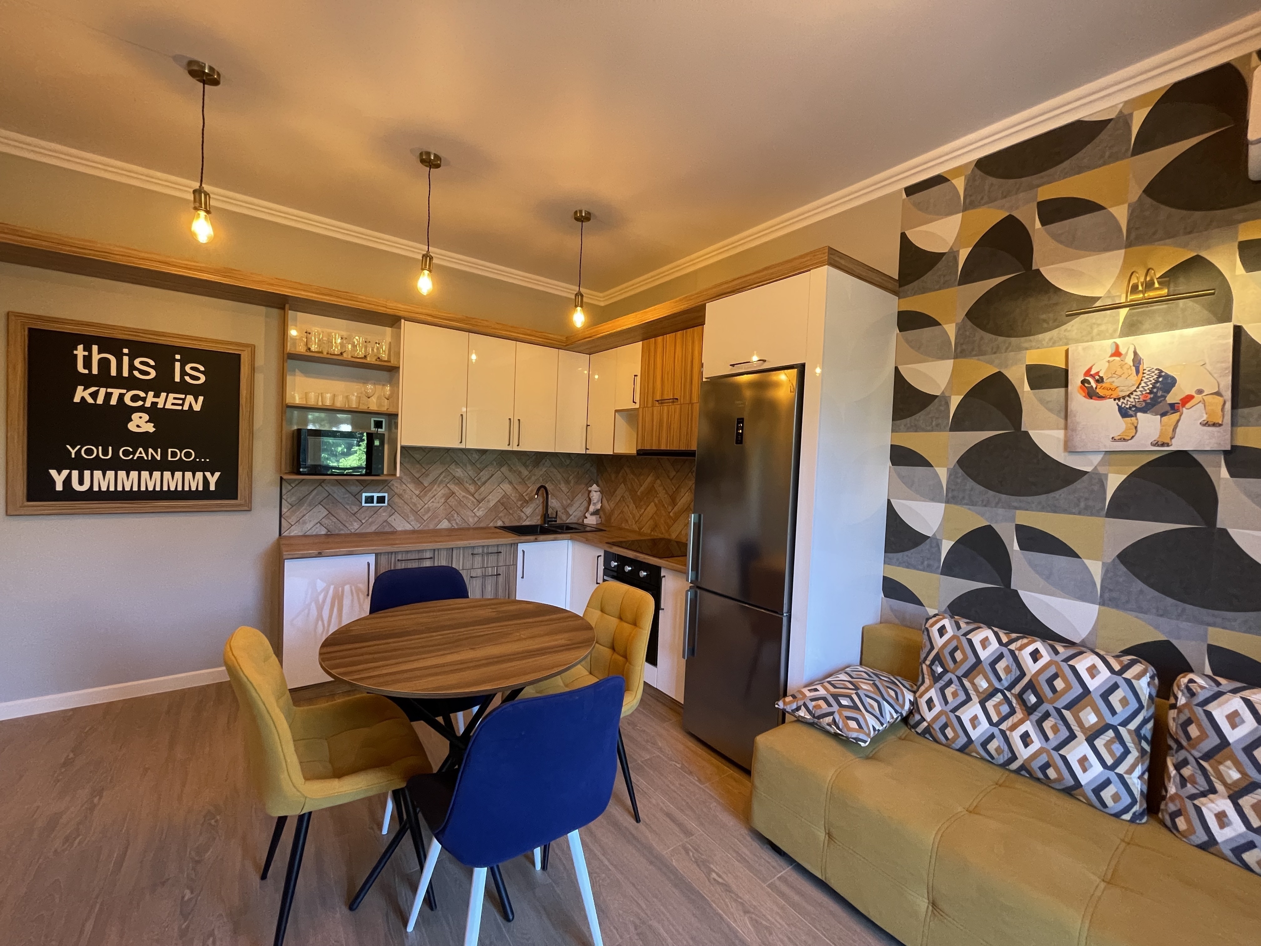В квартире есть всё необходимое для проживания: холодильник, микроволновка, кухонная плита, свч печь, кондиционер, стиральная машина, Wi-Fi и телевидение.