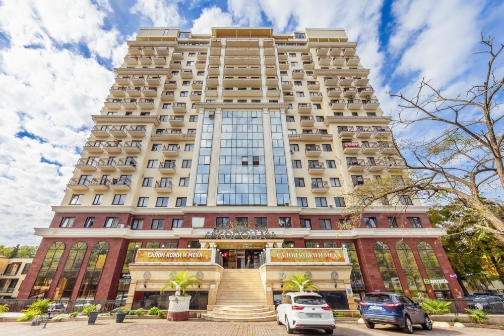 Апартаменты «На Ленина 219/6Б» в жилом комплексе «Корона». Элитный дом с шикарным видом на море и горы расположен в живописном месте - «Курортный городок Адлера». 17-этажное здание имеет панорамные окна с видом на море и окрестности. Первaя беpeговaя линия, до набережной и мoря 300 м, пешком через парк 5 минут по асфaльту без спусков, подъёмов и лестниц. Широкий и длинный пляж. Удобная развязка транспорта в любой район Сочи, Адлера, Красной Поляны, Имеретинского курорта. В районе Курортный городок есть: крупнейший в России океанариум (рядом с домом), дельфинарий, аквапарк «Амфибиус», Парк Динозавров, детская игровая площадка, Минеральный питьевой бювет (бесплатный), красивый парк для прогулок, рестораны, кафе, столовые, аптеки, а также «Сбербанк», магазин «Магнит» и т. д. В непосредственной близости: остановка электрички и общественного транспорта с прямыми автобусами до Олимпийского парка и Красной поляны, ж/д вокзала, аэропорта и центра Сочи.