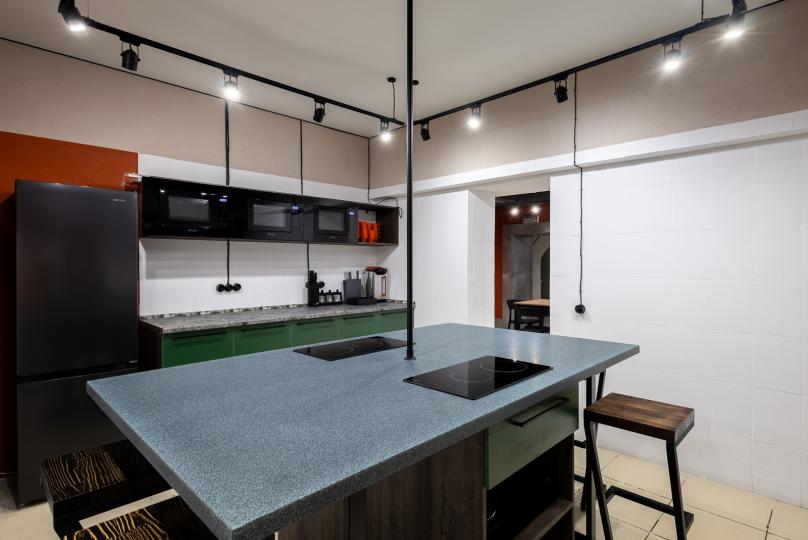 Большая полностью оборудованная кухня, где можно приготовить вкусную еду в компании друзей или просто посидеть за приятными беседами. Большая лаунж зона, где можно собраться для просмотра фильмов, большая отдельная столовая, где можно не только обедать или ужинать, но и собраться большой компанией за настольными играми. Ежедневно в хостеле подают завтраки по меню (по предварительному заказу). Для Вашего удобства – в хостеле можно приобрести гигиенические средства, сувениры и безалкогольные напитки.