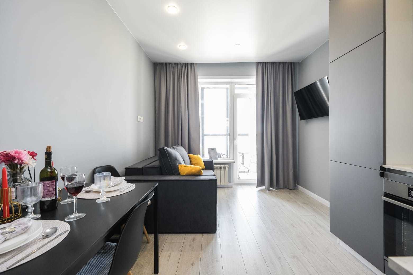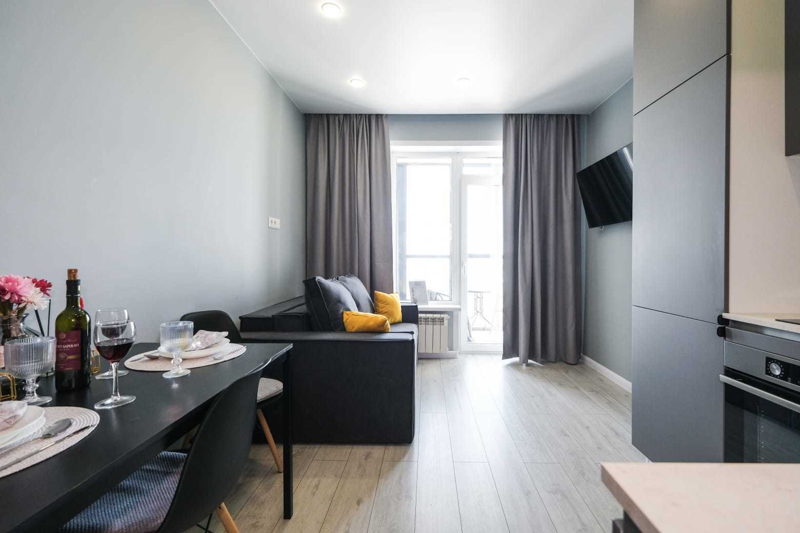Для Вашего удобства предоставлены: стиральная машинка, двуспальная кровать с ортопедическим матрасом 160/200, двухспальный диван, кухонная зона, два плазменных телевизора 50 диагональ Smart TV, холодильник, плита, микроволновая печь, духовой шкаф, микроволновка, чайник, посуда, утюг, гладильная доска, сушилка для белья, фен, безлимитный Wi-Fi.