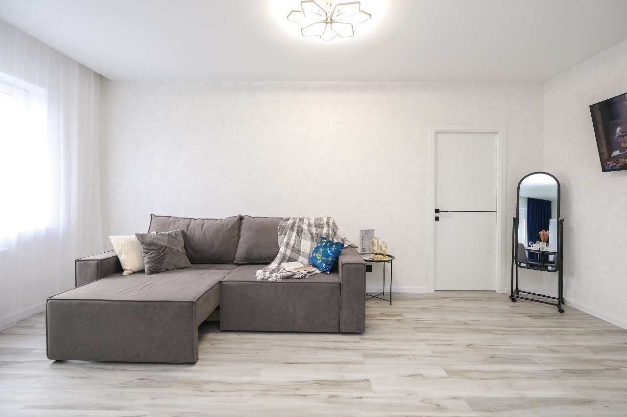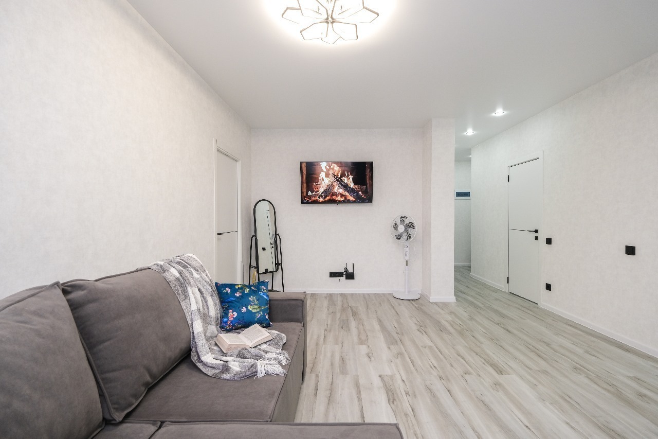 Для Вашего удобства предоставлены: стиральная машинка, двуспальная кровать с ортопедическим матрасом 160/200, двуспальный диван, кухонная зона, два плазменных телевизора 140 см Smart TV, холодильник, плита, микроволновка, чайник, посуда, утюг, гладильная доска, сушилка для белья, фен, безлимитный Wi-Fi, вентиляторэ