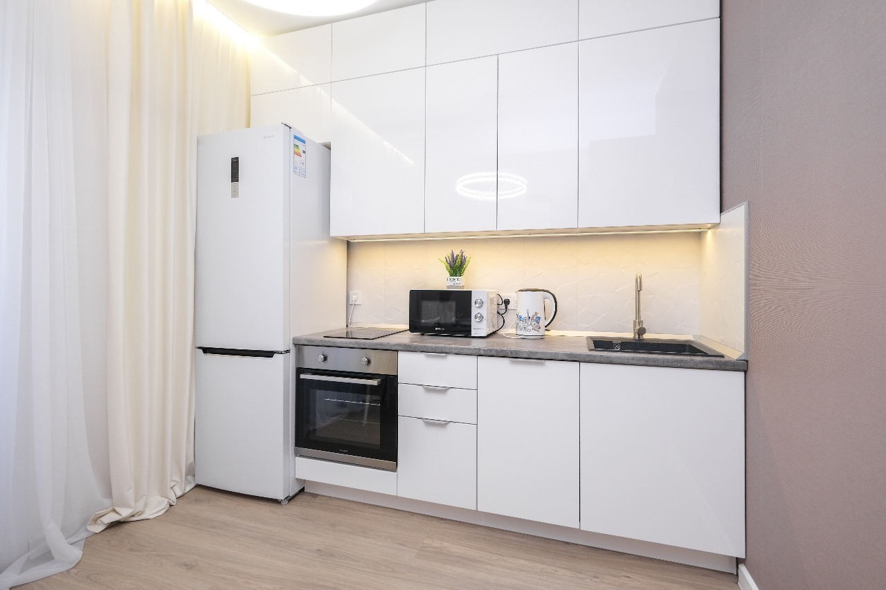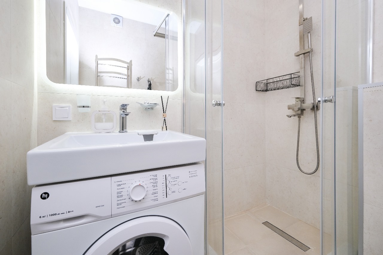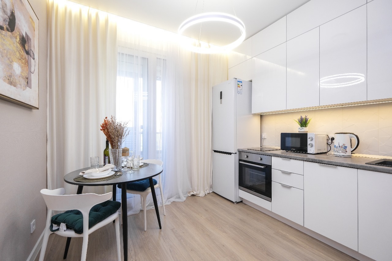Для Вашего удобства: стиральная машинка, двуспальная кровать с ортопедическим матрасом 200/160, кухонная зона, телевизор 81 см Smart TV, холодильник, плита, духовой шкаф, микроволновка, чайник, посуда, утюг, гладильная доска, сушилка для белья, фен, безлимитный Wi-Fi, кондиционер.