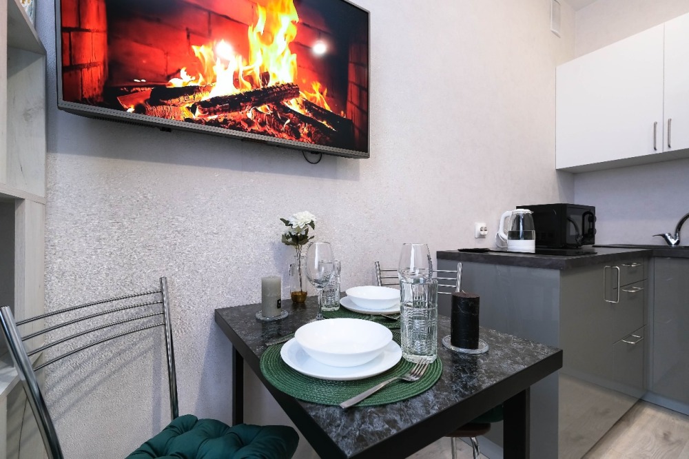 Для Вашего удобства предоставлены: стиральная машинка, двуспальная кровать с ортопедическим матрасом 160/200, двуспальный диван 140/180, кухонная зона, два телевизора 81 см Smart TV, холодильник, плита, духовой шкаф, микроволновка, чайник, посуда, утюг, гладильная доска, сушилка для белья, фен. Безлимитный Wi-Fi, водонагреватель.
