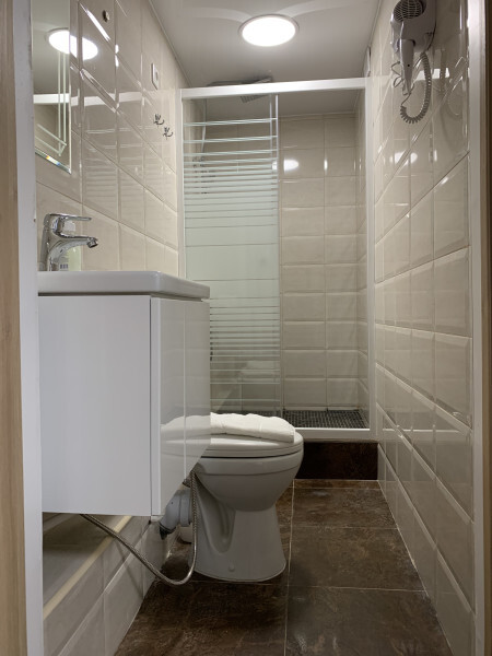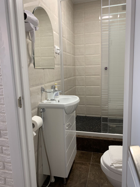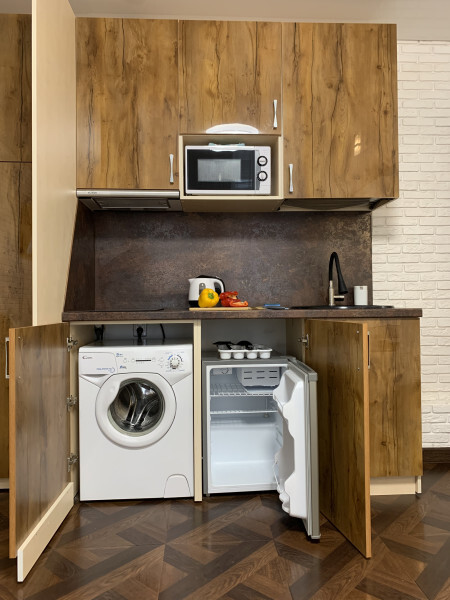 Семейный апартаменты готовы принять пятерых гостей: кровать спринг-бокс с беспружинными матрасами, раскладные диванчики и кресло. На тридцати квадратных метрах есть все для комфортного прибывания: Wi-Fi, смарт-ТВ 46 диагональ, индукционная плита, вытяжка, микроволновка, посуда, холодильник, фен, стиральная машинка, сплит. система. На случай отключения горячей воды предусмотрен бойлер. Есть парковочное место для авто (необходимо предварительное бронирование)