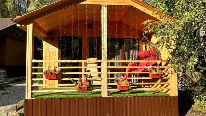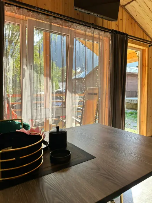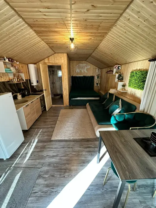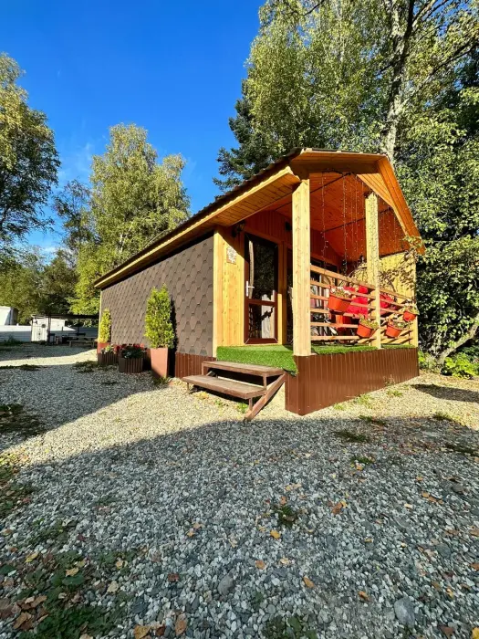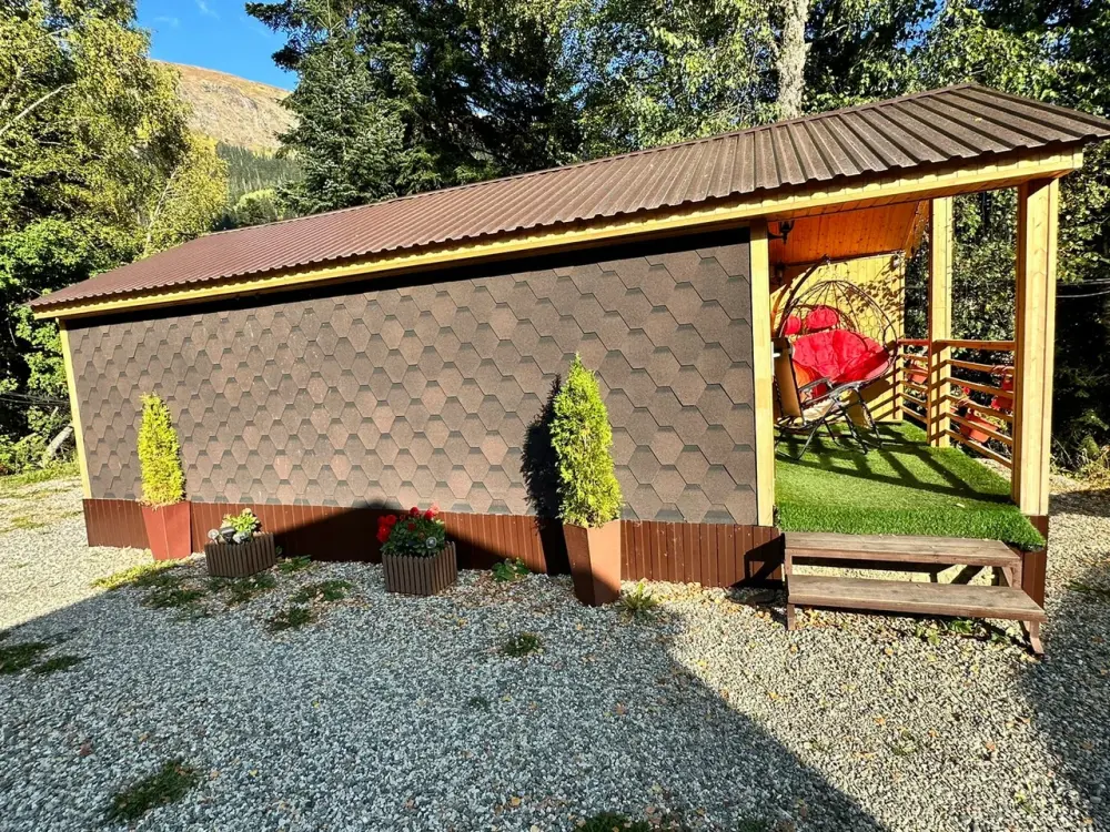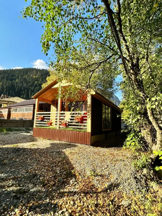 Сдаётся новый эко-домик «Стрелка» в центре Домбая, рядом с подъемником. Небольшой тёплый домик в шаговой доступности от посадки на канатную дорогу - идеален для пары или небольшой семьи, любителей лыж и горных прогулок. Панорамные окна открывают вид на вершины, утром легко выйти на трассу - подъёмник в нескольких минутах ходьбы. В 3 минутах ходьбы находится автовокзал. Подходит для зимних сезонов и летних походов по горам. Рядом - кафе, прокат снаряжения и краткие маршруты для прогулок. Домик удобно расположен для тех, кто хочет быть максимально близко к подъемнику и при этом иметь уединённое место для отдыха. Каток и ватрушки в пешей доступности.