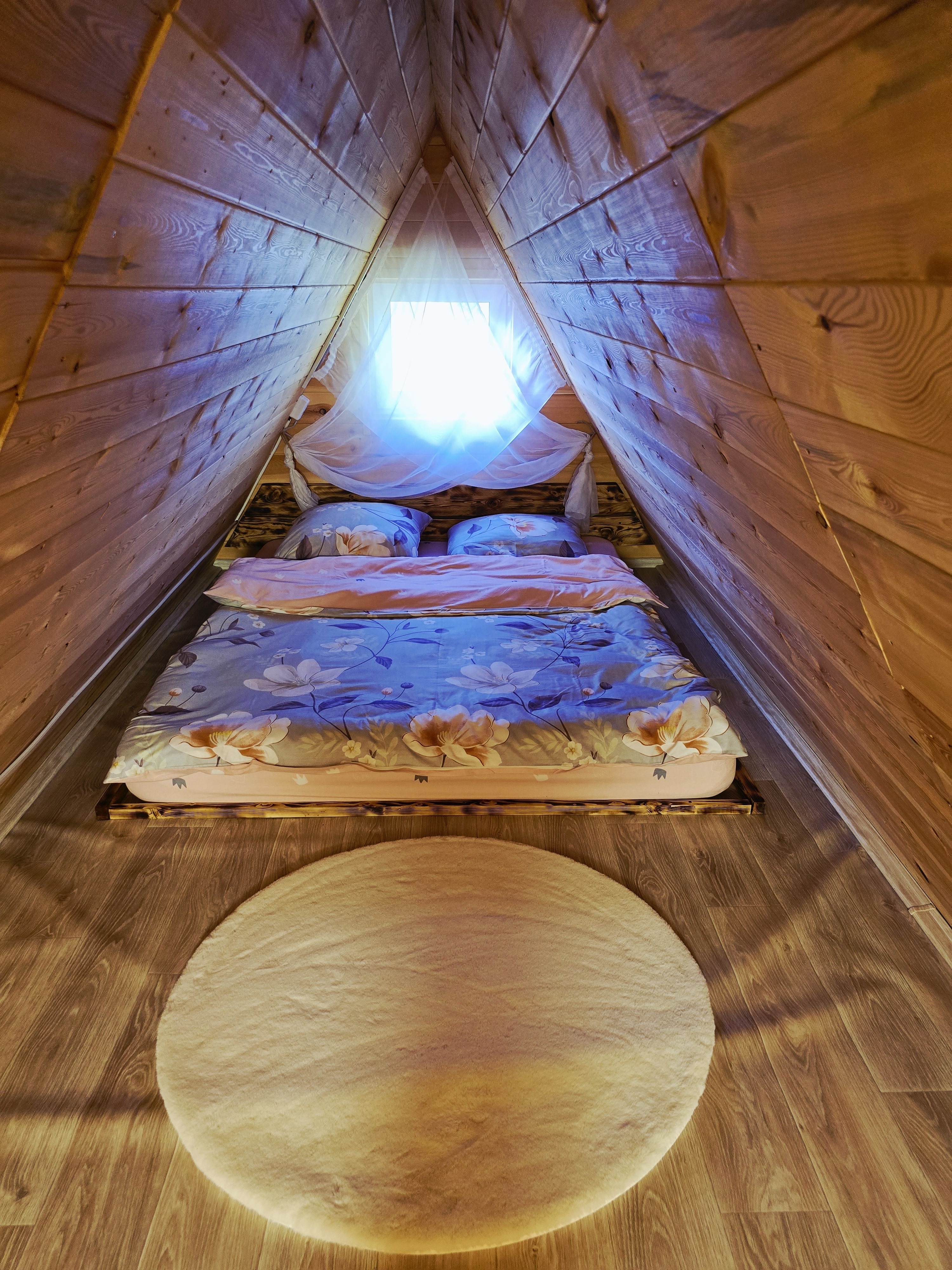На первом полностью укомплектованная кухня (холодильник, плита, микроволновая печь, чайник, посуда). В душевой чистые полотенца, фен, мыльные принадлежности. В гостиной большой обеденный стол на 6 персон, диван с двумя спальными местами, телевизор, Wi-Fi. Дом теплый с возможностью регулировки температуры.