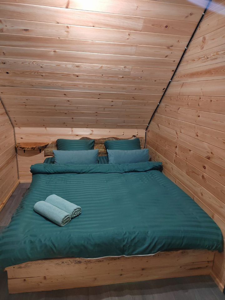 В спальных комнатах большие двуспальные кровати с чистым постельным бельём.
