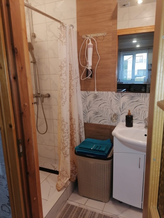 Двуспальная кровать, раскладной диван, телевизор, Wi-Fi, полностью оборудованная кухня: плита, чайник, холодильник, вся необходимая посуда и принадлежности. Стиральная машина, утюг, фен. Чистое постельное бельё.