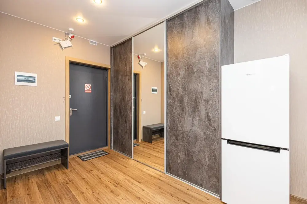 Новая просторная студия в Кемерово около Губернского центра спорта «Кузбасс». 10 этаж (есть лифт). Удобно заезжать тем, кто прилетел на самолёте или приехал на машине из Новосибирска, Томска, Красноярска, Барнаула и других городов. А ещё: продуктовые магазины («Ярче», «Пятёрочка», «Бристоль»), аптека, кафе и рестораны, булочная-кондитерская с кофе и завтраками.