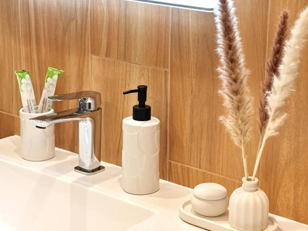 В подарок: разовые средства гигиены (шампунь, гель для душа, жидкое мыло, зубной набор).