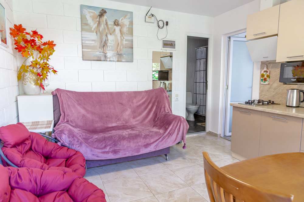В 2 комнатной отдельной комнате площадью 45 кв. м. могут разместиться до 5 гостей. Находится на 1 этаже 1 этажного дома. Тип дома: блочный.