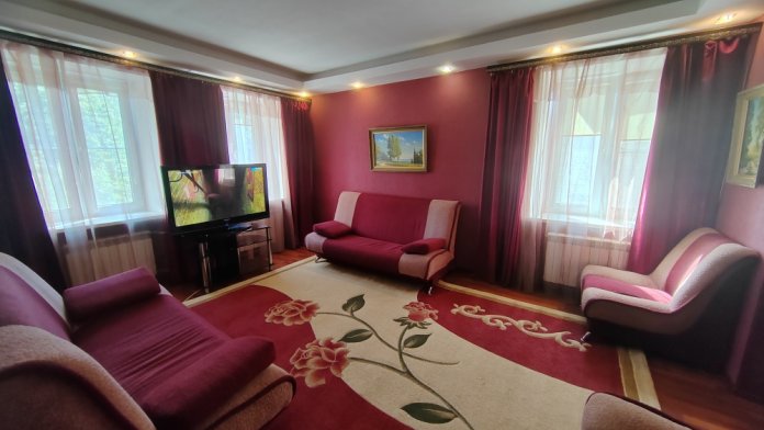 В квартире 4 раздельных спальных места, может разместиться 7 человек (большая двухспальная кровать, два двухспальных дивана и еврораскладушка). Добротная и уютная двухкомнатная квартира с потолками высотой 3 м, современным ремонтом, со всей мебелью и техникой, балконом, высокоскоростным интернетом, большими плазменным и Смарт LED телевизорами, стиральной машиной, СВЧ печью, эл. чайником, утюгом, пылесосом, постельным бельем, всей необходимой посудой.