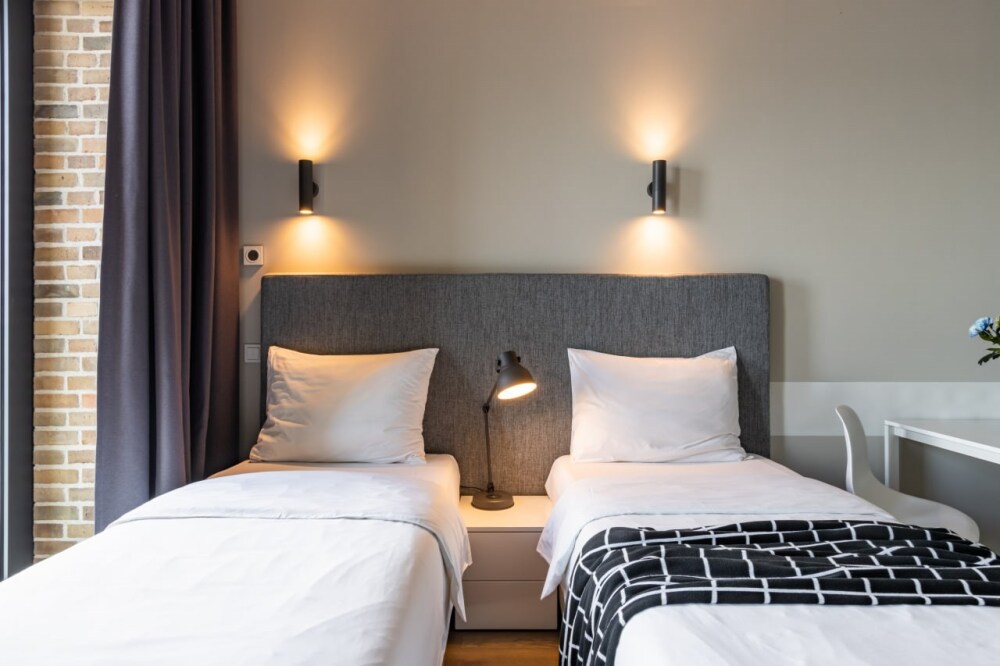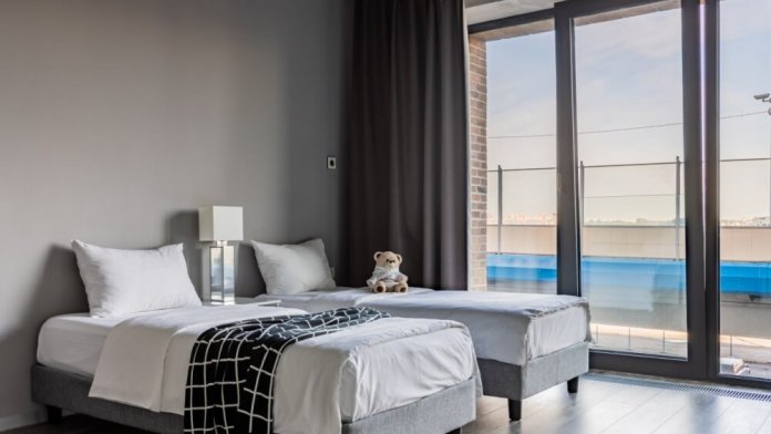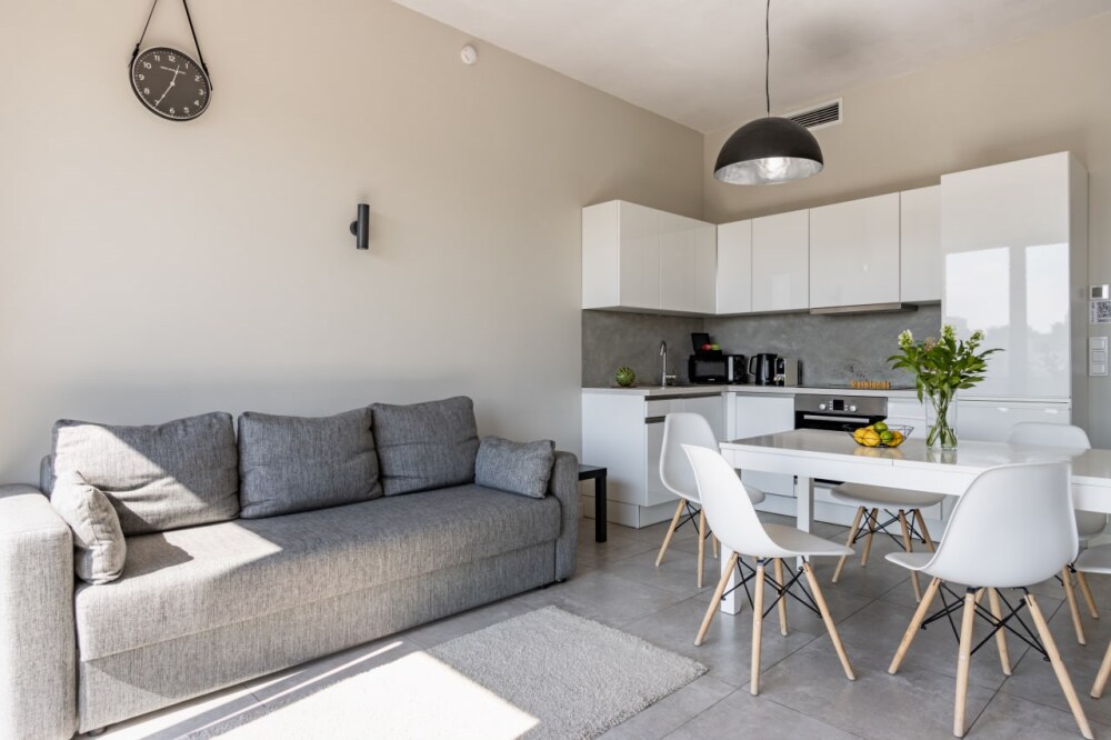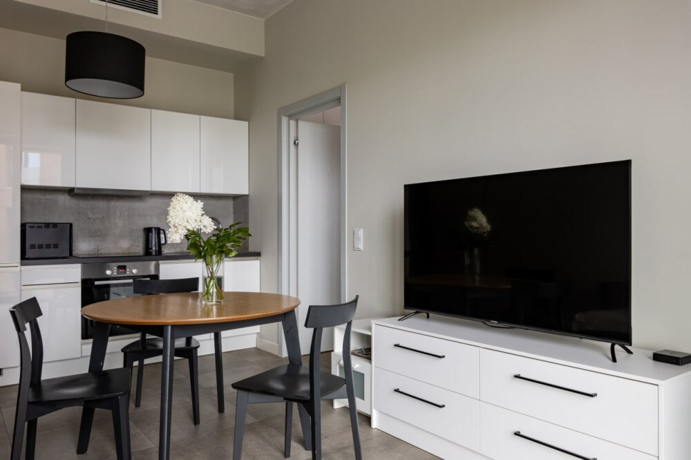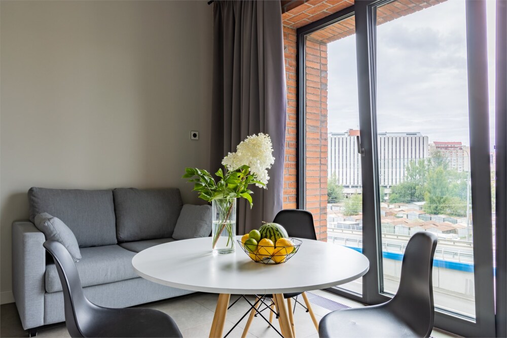 Номер подойдет компании друзей или семейной паре с детьми, а также коллегам, приехавшим в командировку. Два гостя могут разместиться в спальне; кухня-гостиная с дополнительным спальным местом рассчитана на двух взрослых или двоих детей.