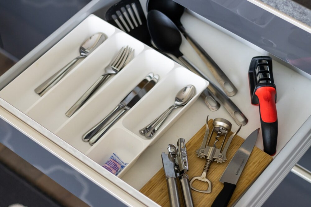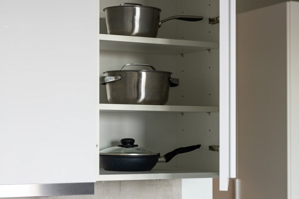 Кухня оборудована бытовой техникой для приготовления пищи и хранения продуктов, оснащена посудой и столовыми принадлежностями.