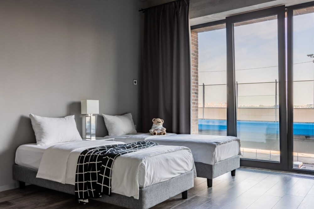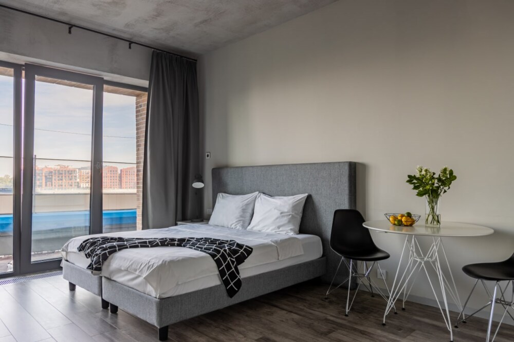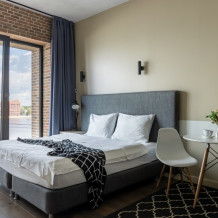 Каждый номер - апартаменты в стиле лофт, оснащённые всем необходимым для пребывания на любой срок. Из панорамных окон номеров открывается вид на город, красавицу Неву, Газпром Арену и Лахта Центр. В числе удобств стиральная машина, полностью оборудованная кухня и собственная ванная комната с бесплатными туалетно-косметическими принадлежностями и феном. Гости также могут пользоваться посудомоечной машиной, микроволновой печью, холодильником и чайником.