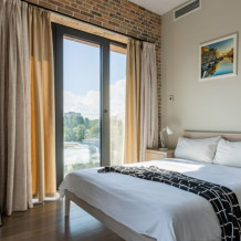 Апартаменты с двумя раздельными спальнями и гостиной. Расположены на 4-6 этажах отеля, панорамные окна выходят во внутренний двор-парк.