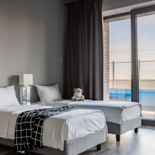 Спальное место: одна двуспальная кровать-трансформер (180х200см) или две односпальные кровати (90х200см). В ванной комнате есть фен, косметические принадлежности и набор полотенец.