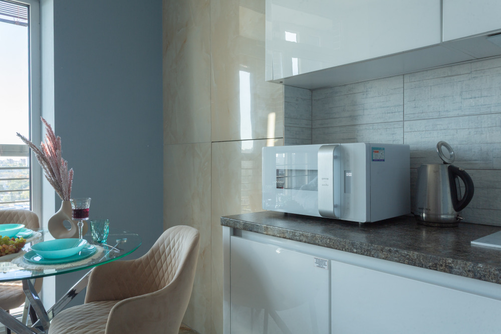 - Кухня: холодильник, плита, духовка, микроволновка, чайник, вся необходимая посуда