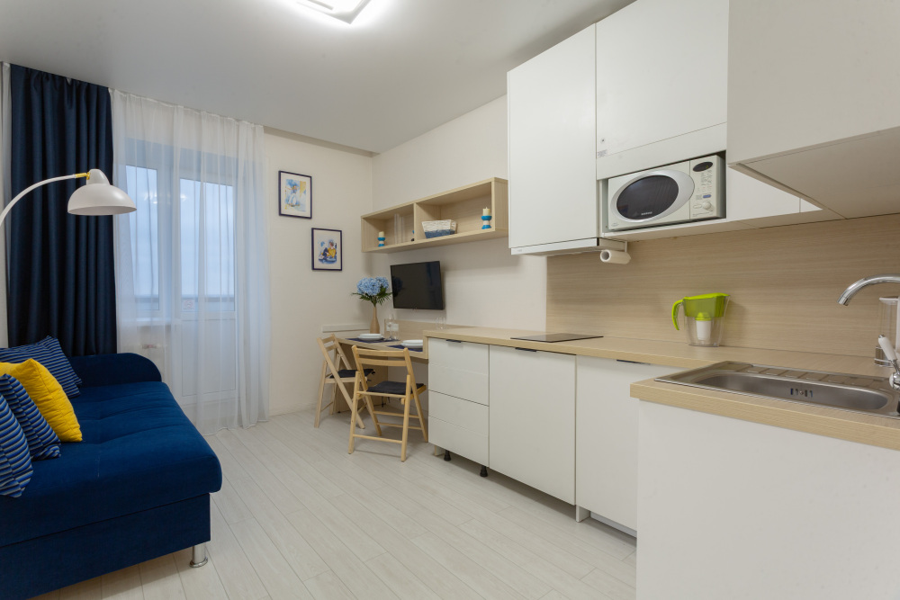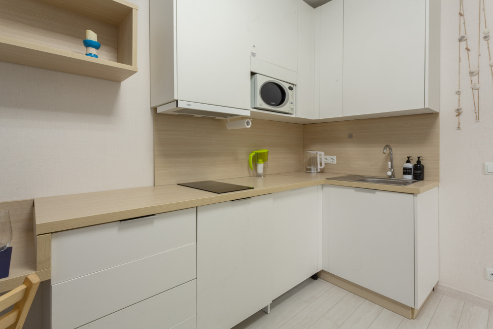 - Кухня: холодильник, плита, духовка, микроволновка, чайник, вся необходимая посуда;