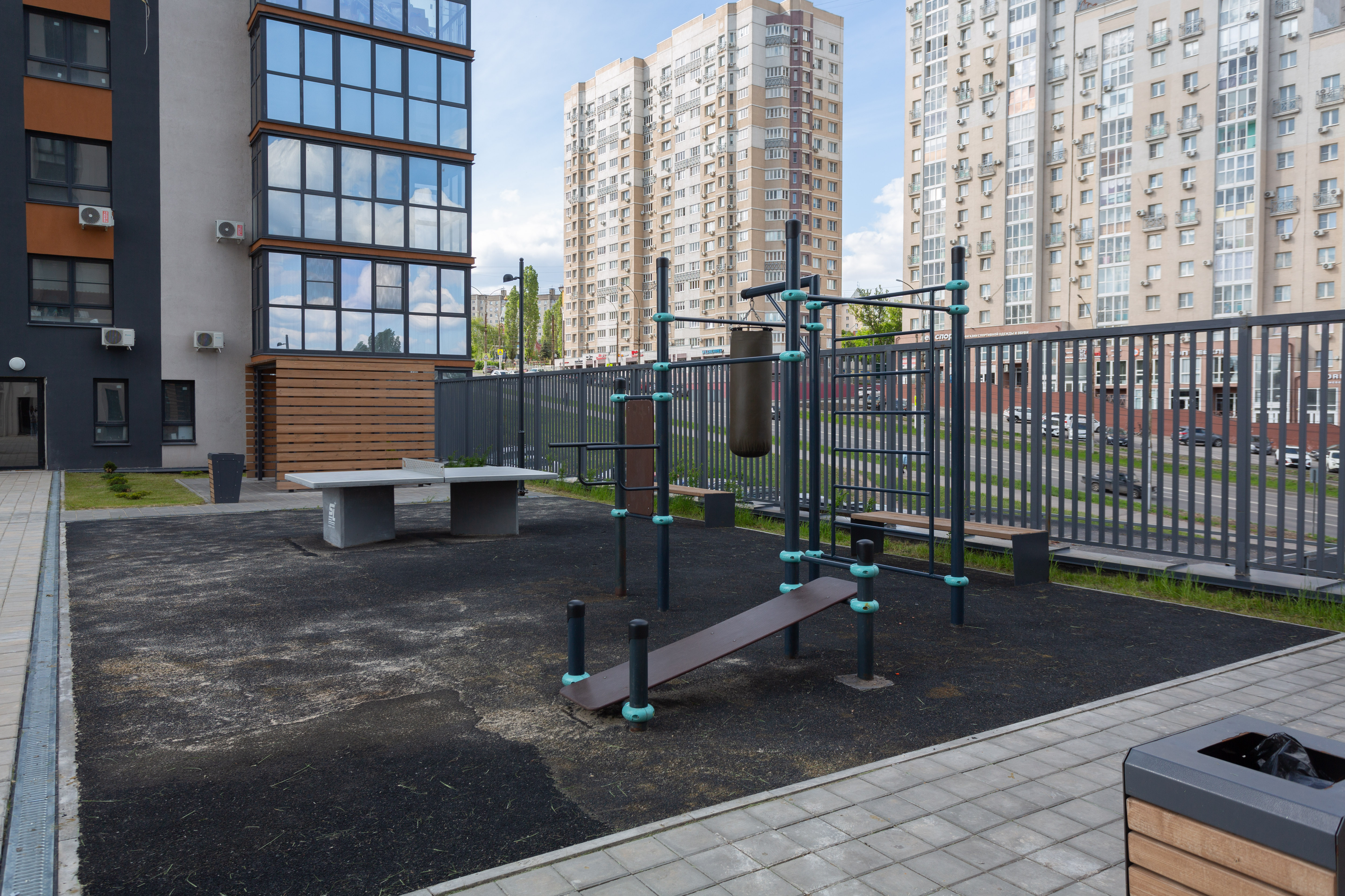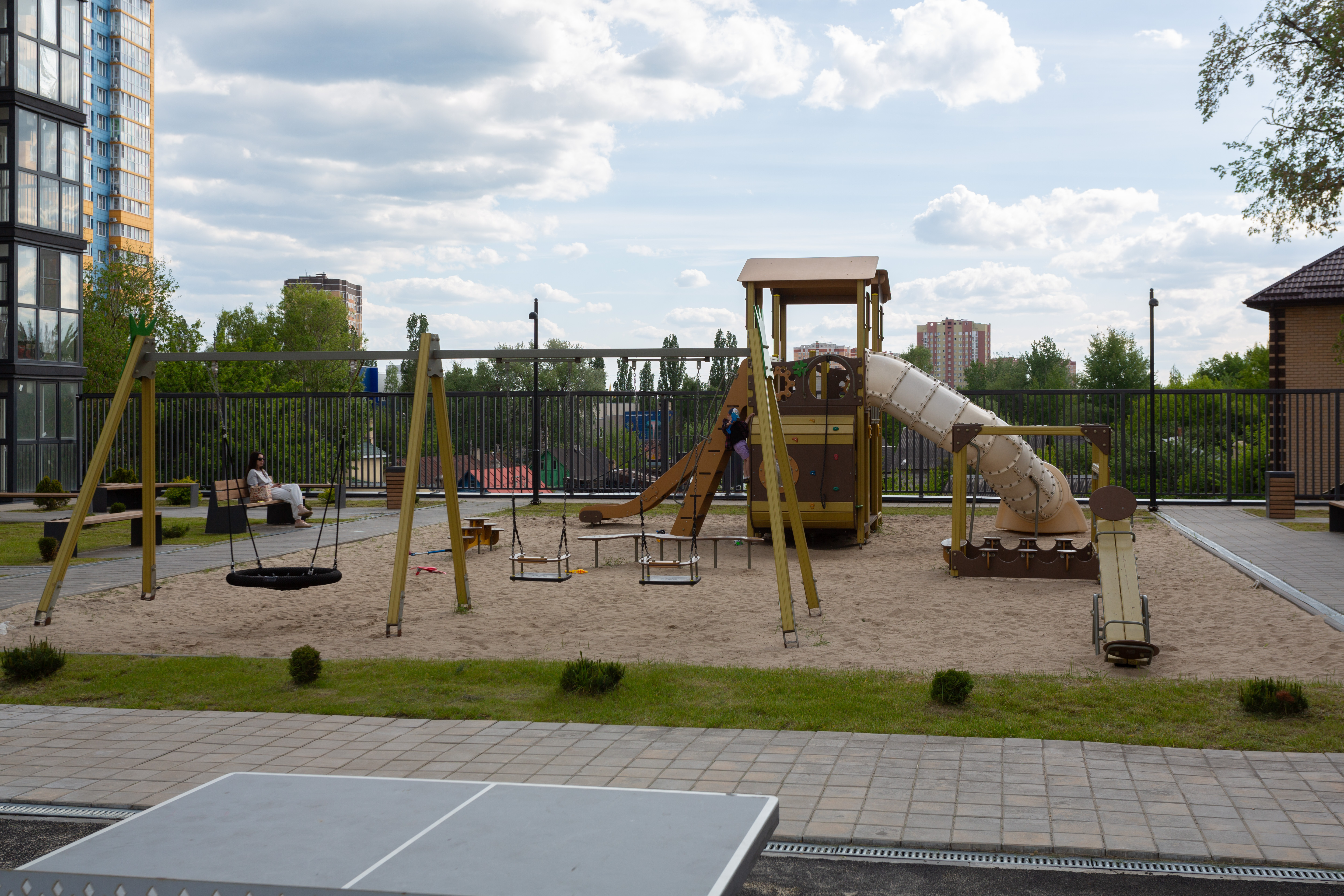 Во дворе: закрытая детская площадка и зона отдыха.