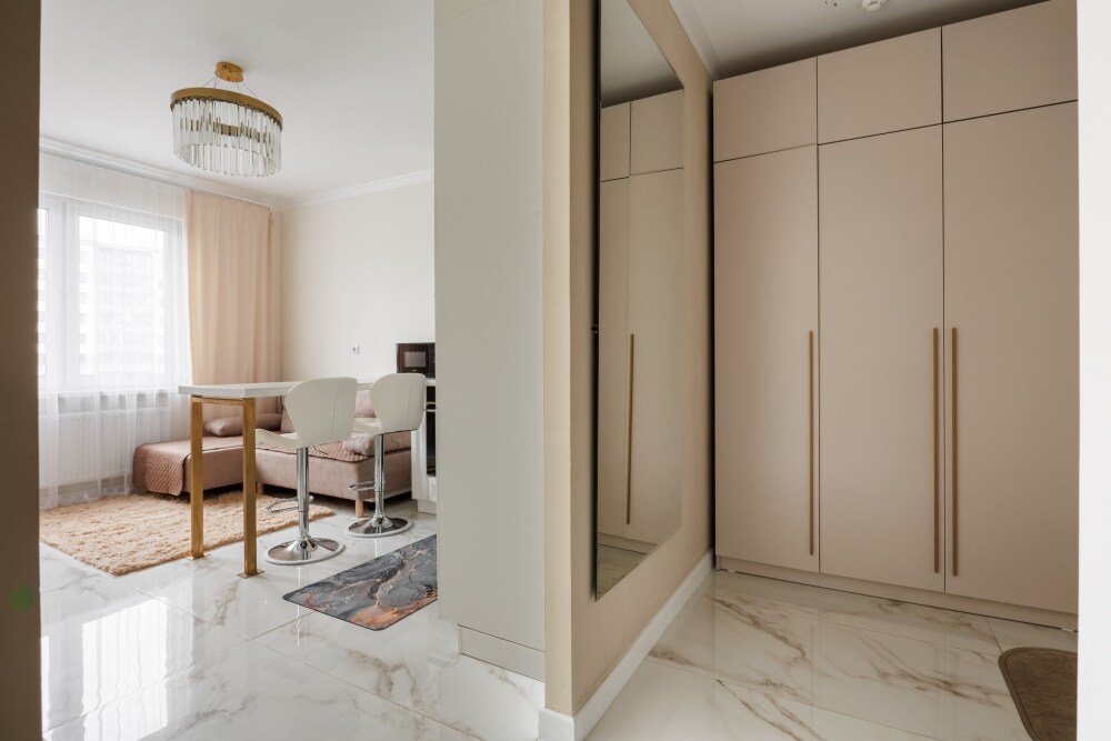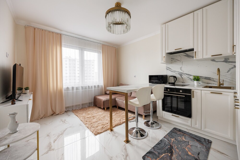 Апартаменты расположены в доме комфорт-класса. Каждое пространство продумано до мелочей: современная мебель, качественные материалы, тёплое освещение и акценты, которые создают атмосферу дома, а не гостиницы.