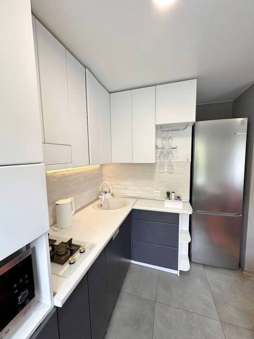 Кухня полностью оборудована мебелью и бытовой техникой (газовая варочная поверхность, холодильник, СВЧ-печь с функцией духовки, посудомоечная машина, вытяжка, стиральная машина, электрический чайник). Есть вся необходимая посуда для приготовления и приема пищи. Для Вас у нас всегда есть чай, сахар, соль.