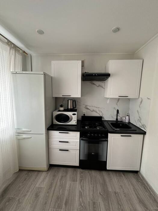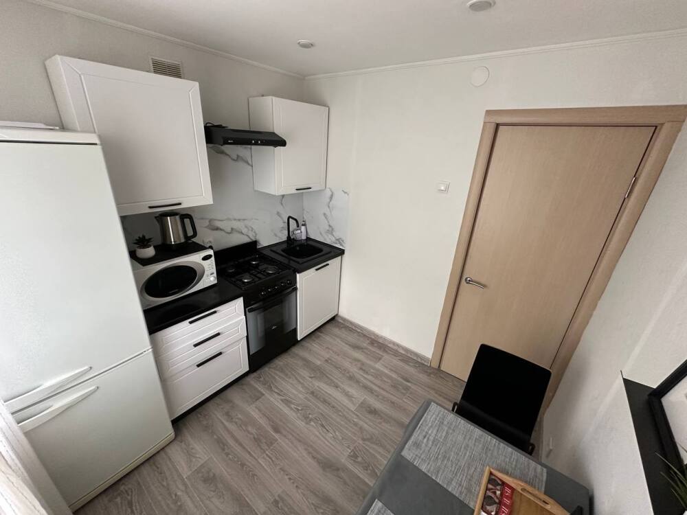 Кухня полностью оборудована мебелью и бытовой техникой (холодильник, СВЧ-печь, электрический чайник, газовая плита, электрический духовой шкаф). Есть вся необходимая посуда для приготовления и приема пищи. Для Вас у нас всегда есть чай, сахар, соль, подсолнечное масло.