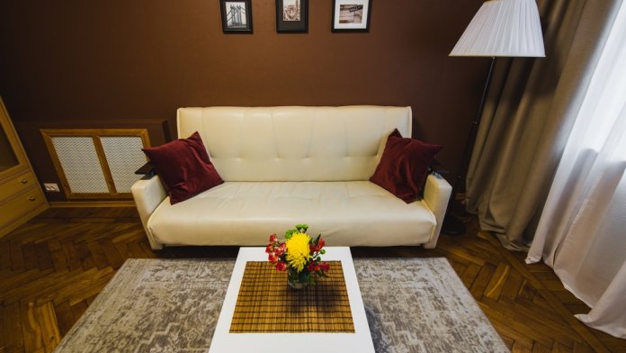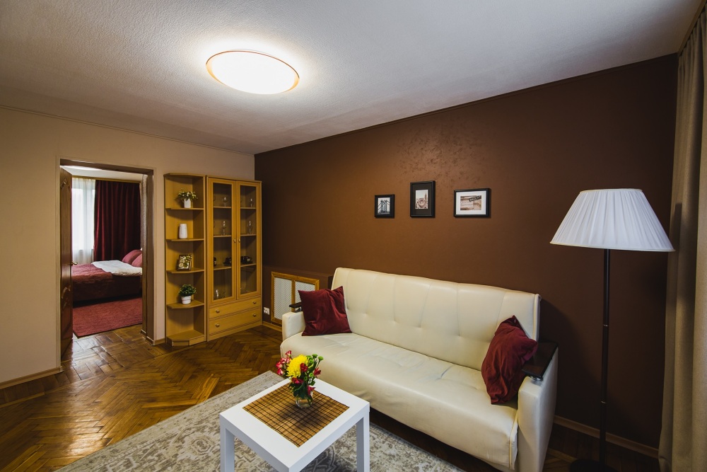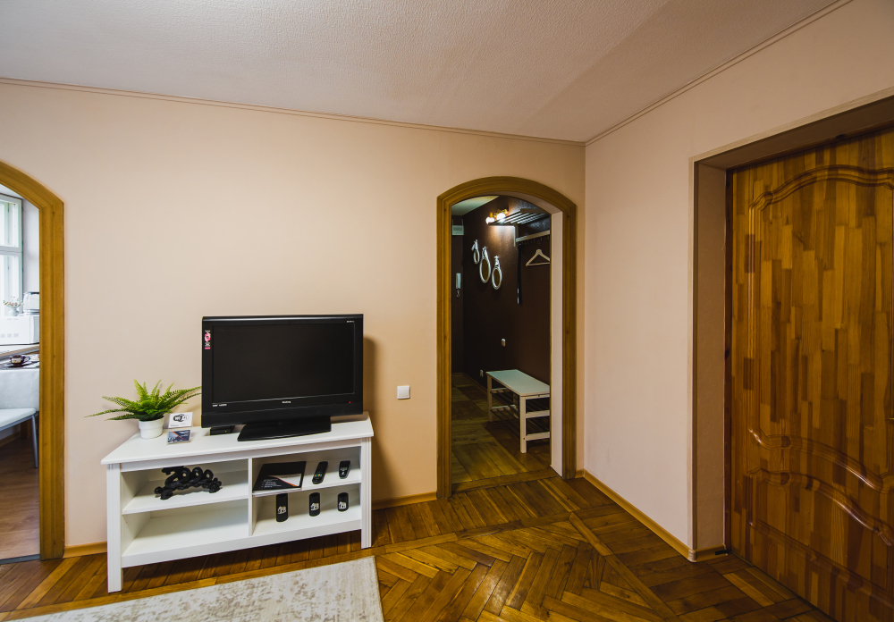 Мы приготовили для Вас удобную двуспальную кровать 160 см с ортопедическим матрасом и односпальную кровать с ортопедическим матрасом в спальне, диван-кровать 140 см в гостиной, постельное белье из высококачественного страйп-сатина и комплекты махровых полотенец, безлимитный wi-fi интернет и Smart TV.