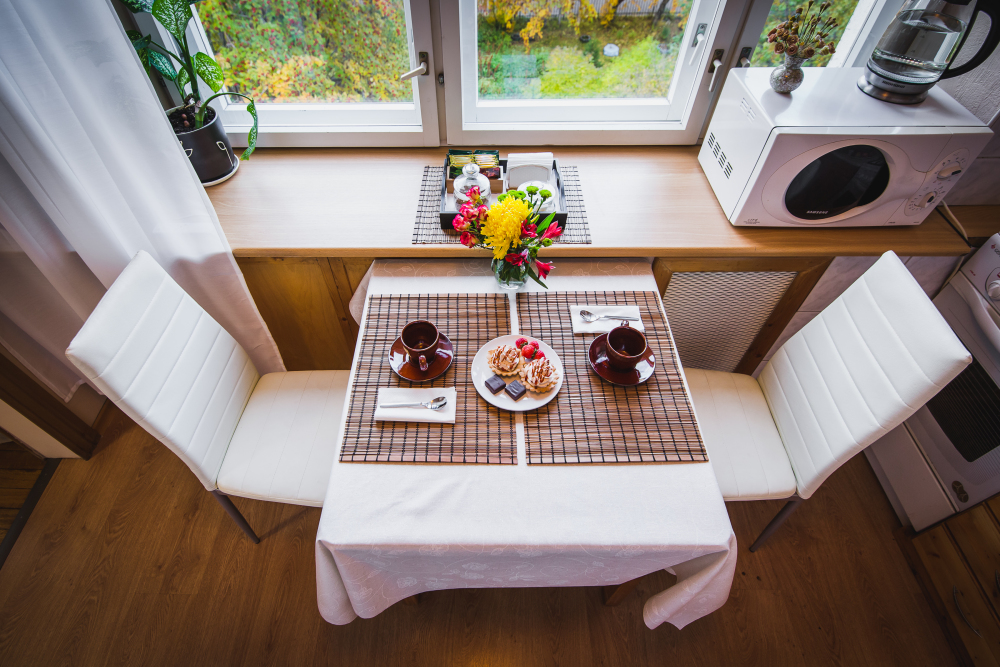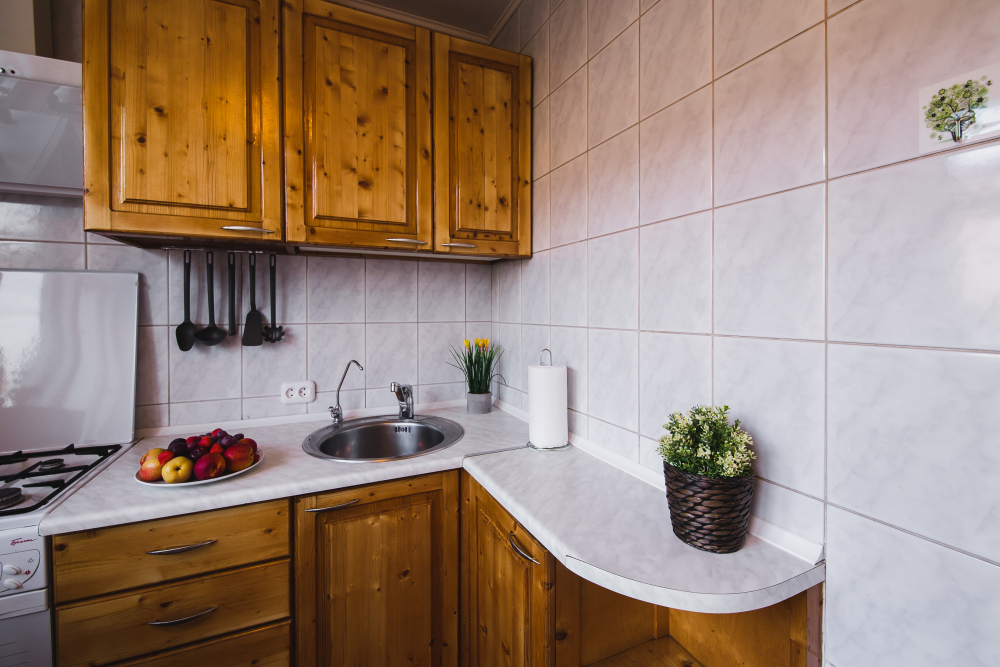 Кухня полностью оборудована мебелью и бытовой техникой (холодильник, СВЧ-печь, электрический чайник, газовая плита, электрический духовой шкаф). Есть вся необходимая посуда для приготовления и приема пищи. Для Вас у нас всегда есть чай, сахар, соль, подсолнечное масло.