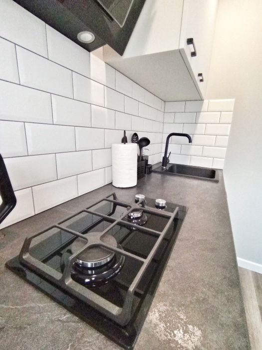 Кухня полностью оборудована мебелью и бытовой техникой (холодильник, СВЧ-печь, электрический чайник, газовая варочная поверхность). Есть вся необходимая посуда для приготовления и приема пищи. Для Вас у нас всегда есть чай, сахар, соль.