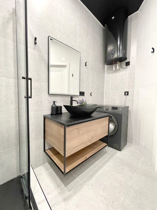 В ванной комнате: душевая кабина, гигиенический душ, стиральная машина, фен, гигиенические принадлежности (шампунь, гель для душа, мыло, ватные диски и палочки). На период сезонного отключения горячей воды предусмотрен бойлер на 80 литров.