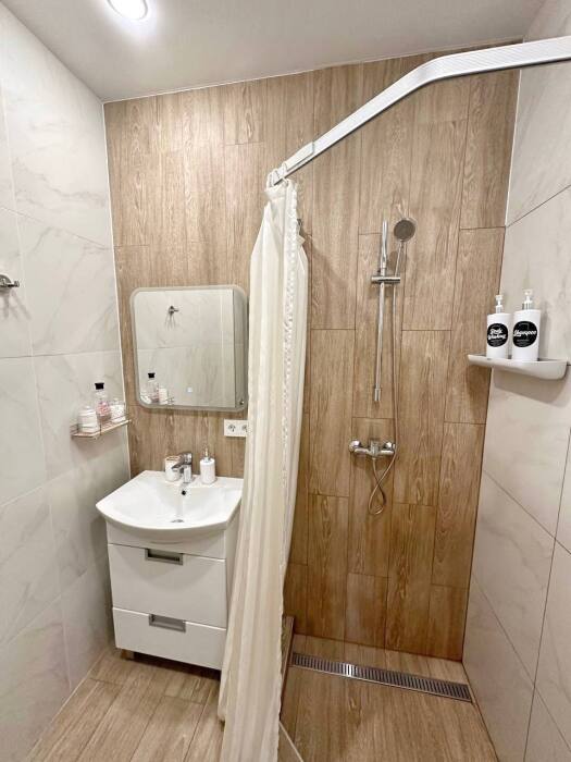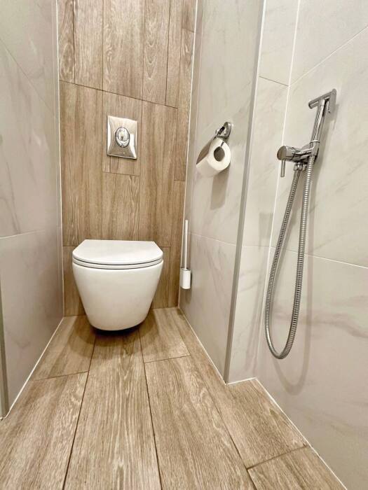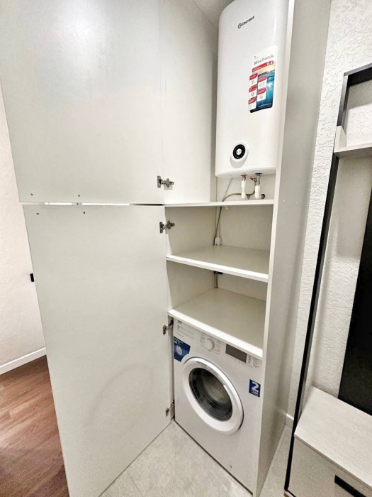 В ванной комнате: душ, гигиенический душ, стиральная машина, фен, гигиенические принадлежности (шампунь, гель для душа, мыло, ватные диски и палочки). На период сезонного отключения горячей воды предусмотрен бойлер на 50 литров.