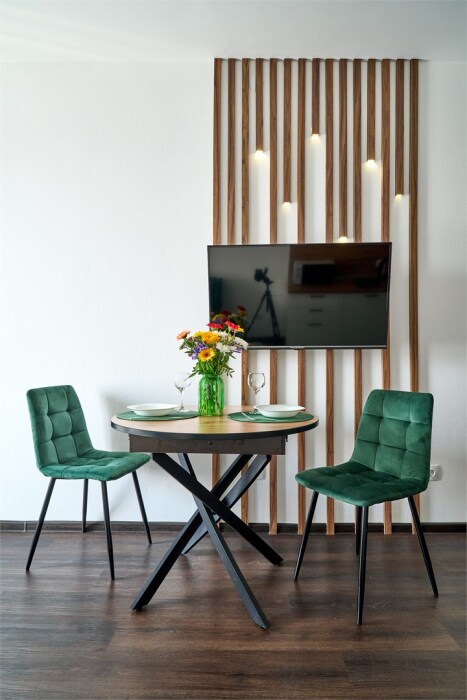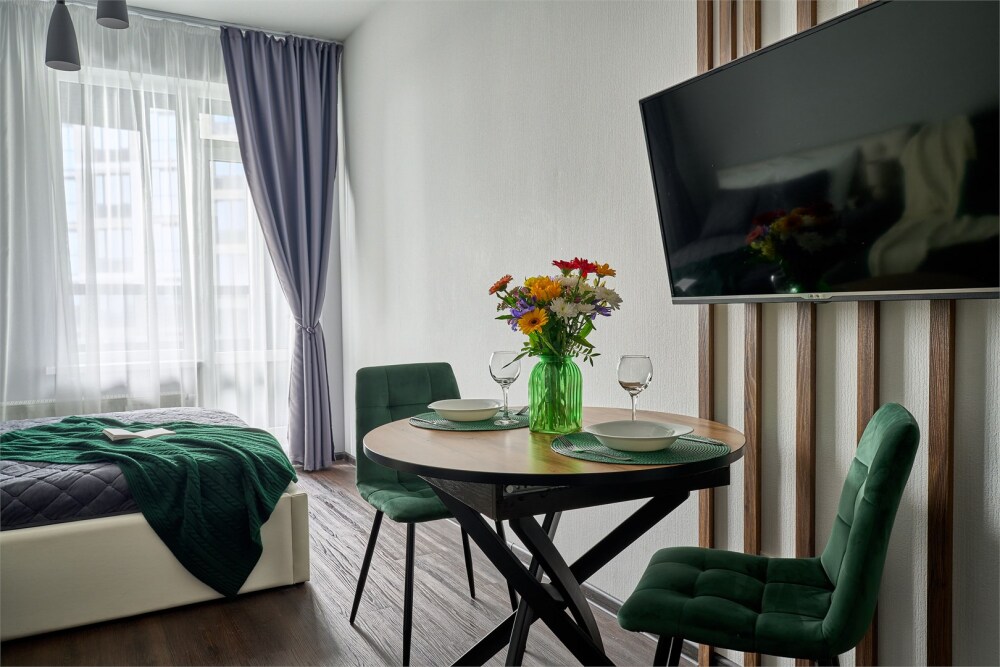 Квартира удивит вас своим необычным и современным стилем. Белые и изумрудные оттенки создают гармоничную симфонию из свежести и элегантности. Панорамная лоджия этой квартиры предлагает вам вид на уютный закрытый двор, где можно наслаждаться тишиной и спокойствием.