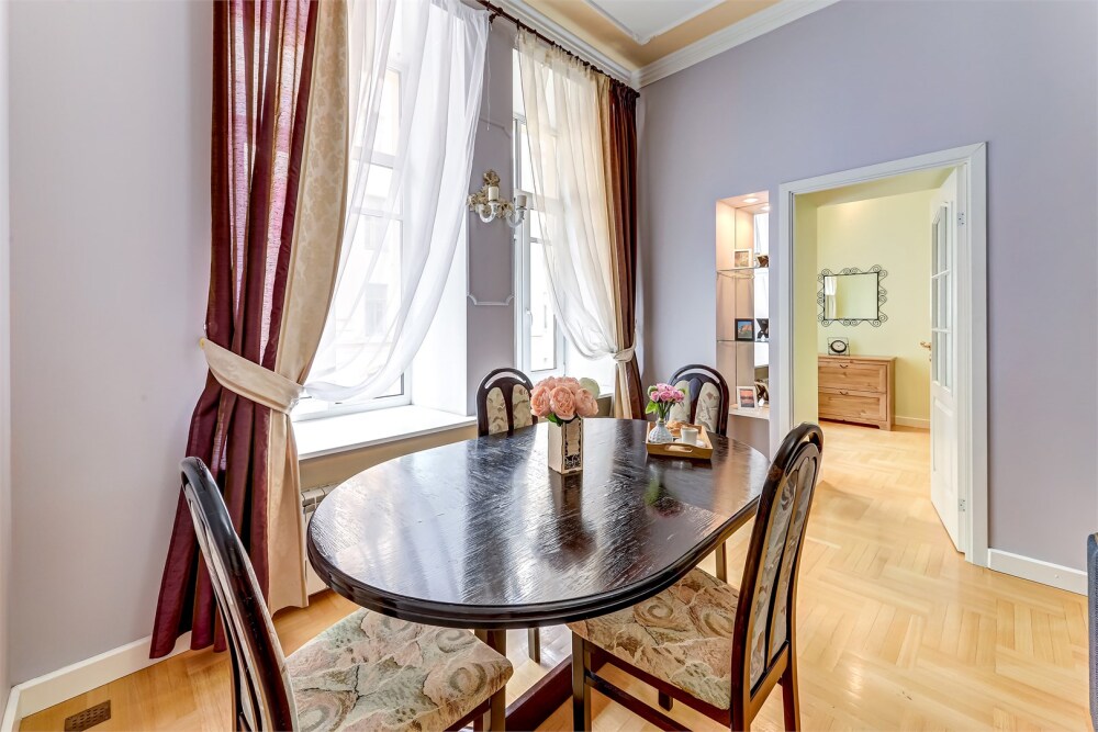 Встречайте элегантность и стиль в современном дизайне этой квартиры. Апартаменты расположены на одной из главных улиц Петербурга – улице Рубинштейна, знаменитая улица баров и ресторанов.