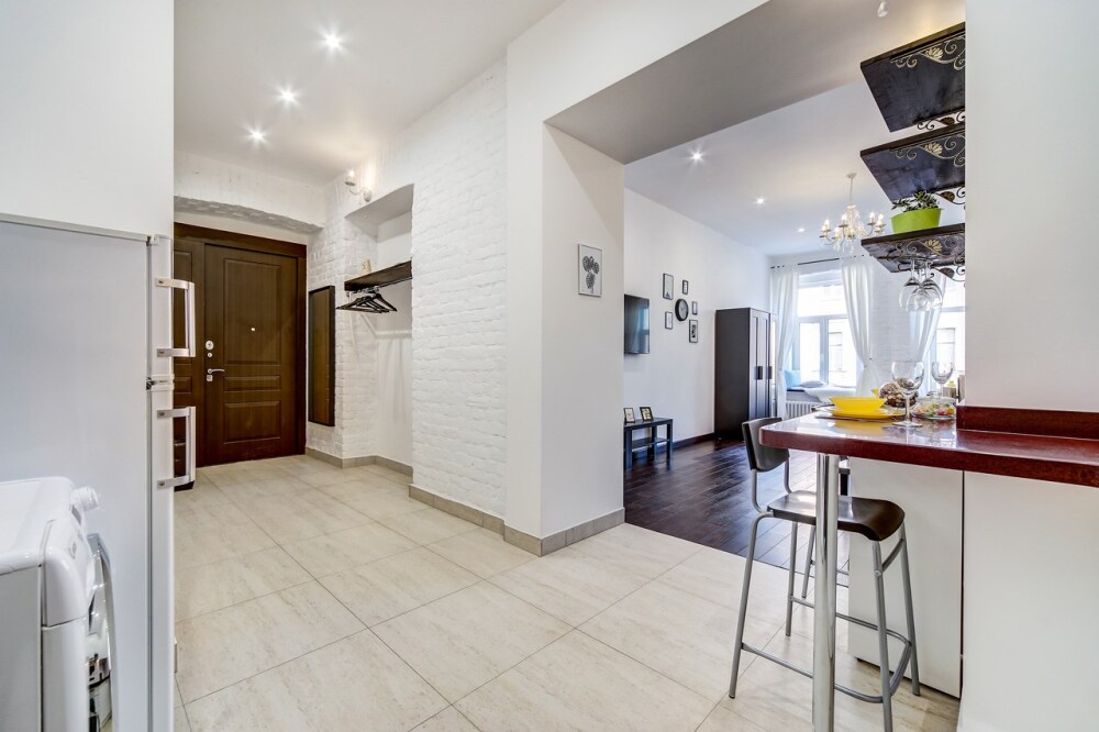 Апартаменты на Дмитровский переулке идеально балансируют между современным дизайном квартиры и историческим зданием, создавая атмосферу уюта и комфорта. Через два больших окна в квартиру всегда будет проникать естественный свет и свежий воздух. Подоконники, словно небольшие балкончики, приглашают к себе уютно устроиться с чашкой чая и книгой.