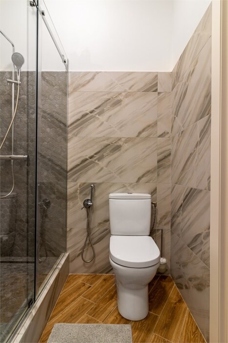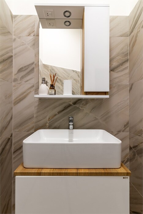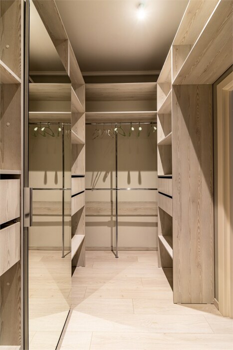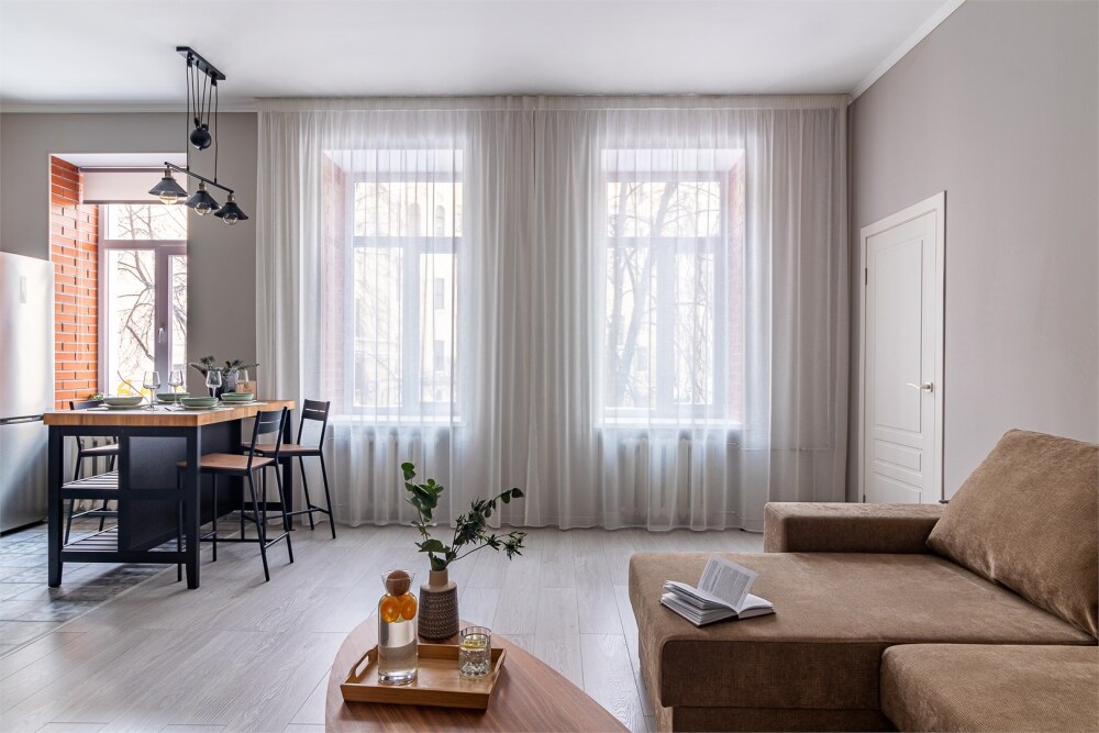 Просторная гостиная с тремя окнами создает ощущение свободы и пространства. Здесь вы сможете отдохнуть после насыщенного дня или провести время с друзьями. Для вашего удобства в апартаментах предусмотрена отдельная гардеробная, где вы сможете разместить все свои вещи.