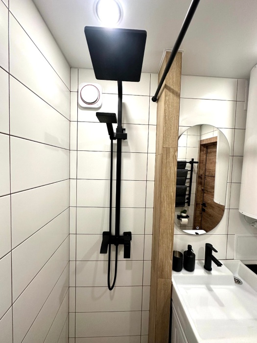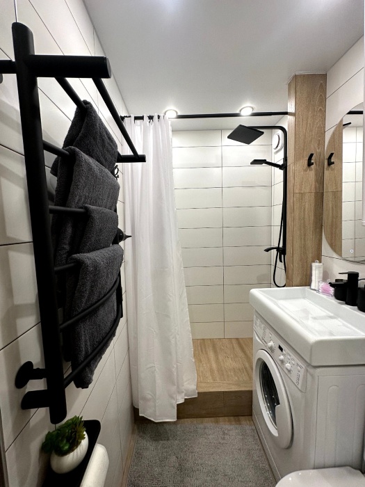 В ванной комнате: душ, гигиенические принадлежности (шампунь, гель для душа, мыло, ватные диски и палочки). На сезонные отключения горячего водоснабжения предусмотрен бойлер на 80 литров. Для Вас: фен, стиральная машина, утюг, гладильная доска и другие приятные мелочи.