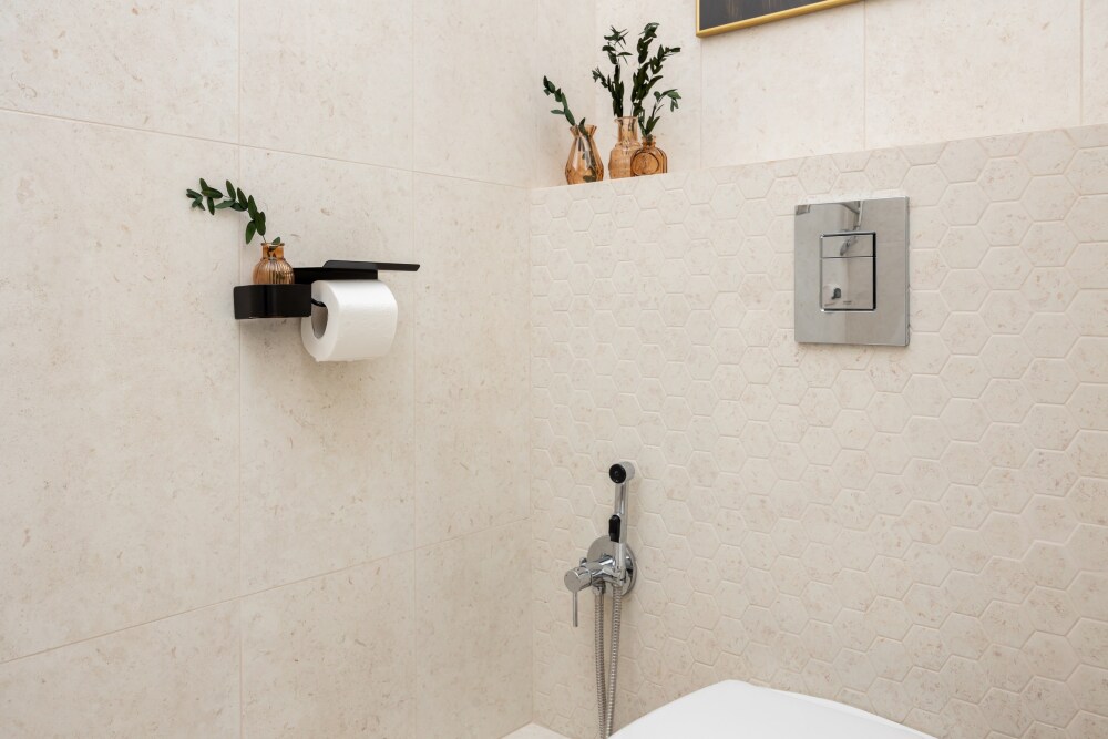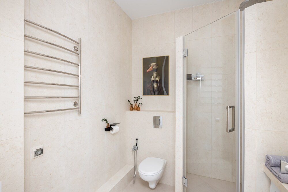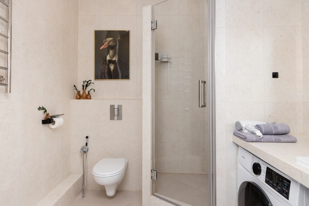 Просторные ванные комнаты с феном, свежими полотенцами и косметическими принадлежностями.