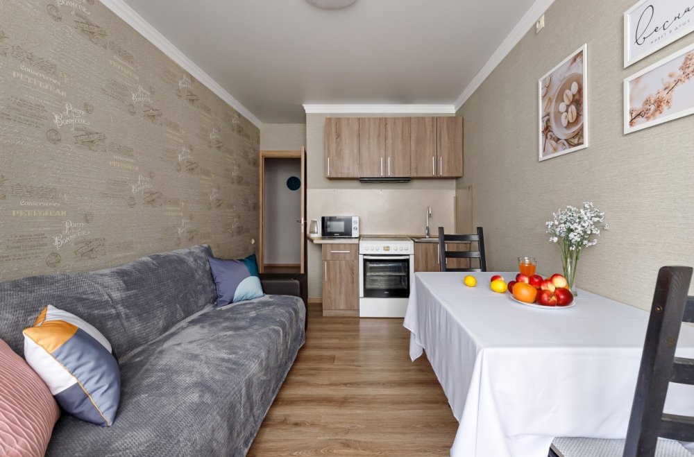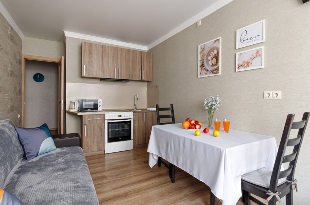 Квaртира укомплектованная бытовой техникой : холодильник, чайник, кондиционер, стиральная машина, телевизор, фен, утюг, гладильная доска.