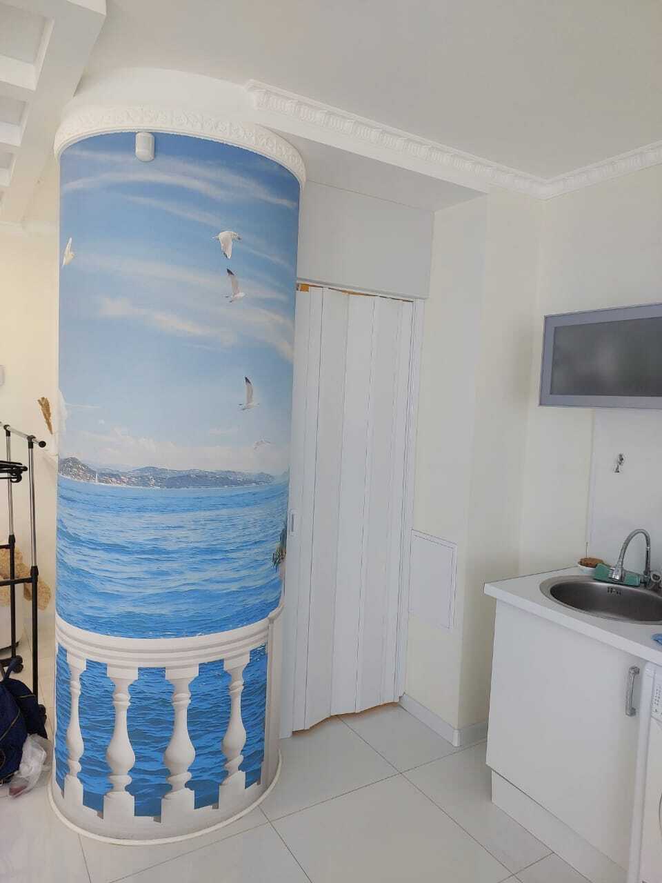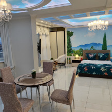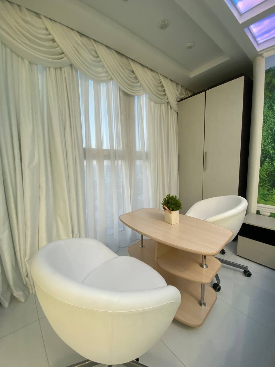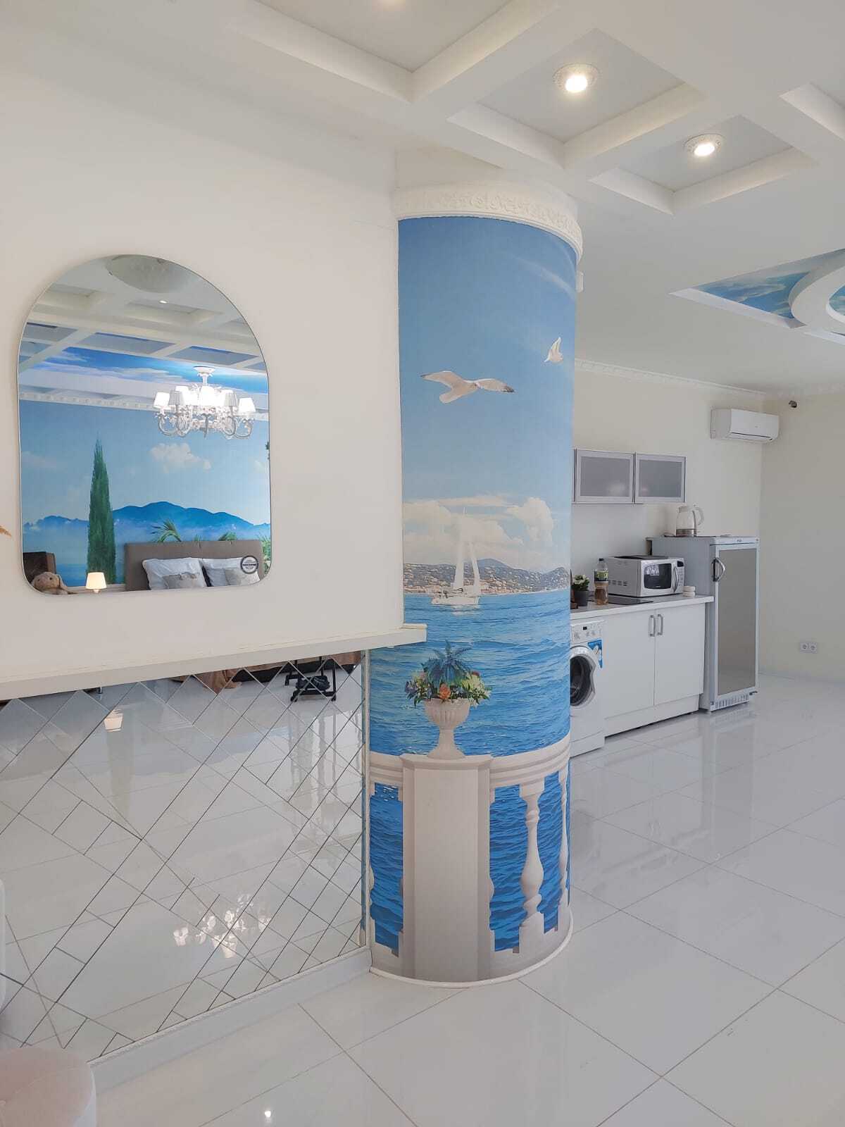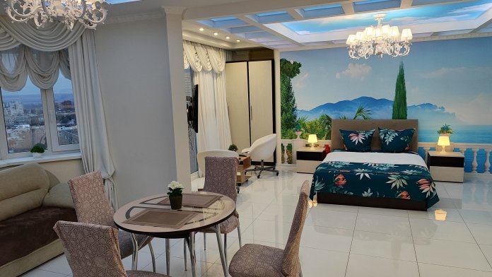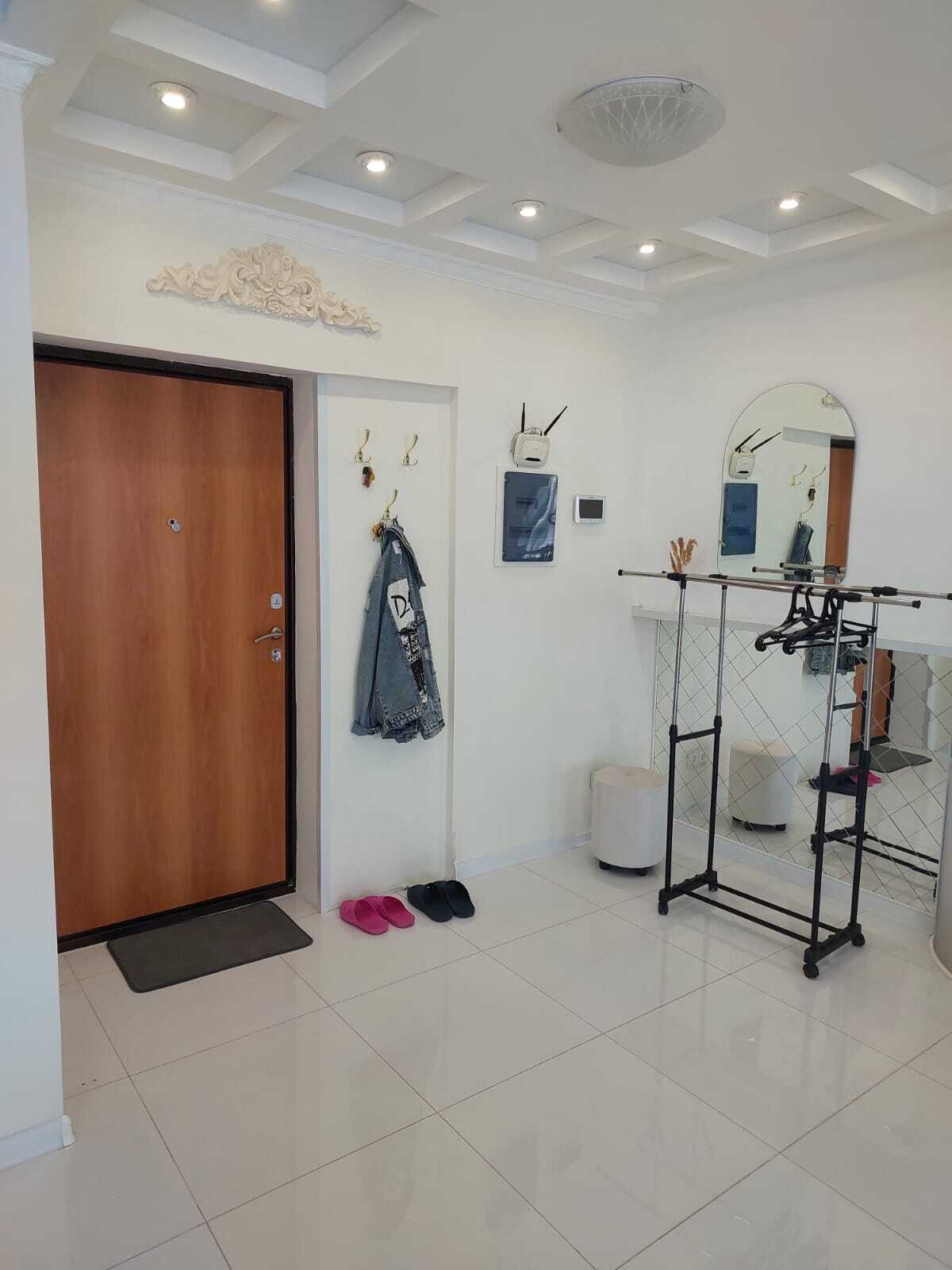 В квартире выполнен дизайнерский ремонт, интерьер светлый и уютный. Витражные окна в пол делают пространство максимально воздушным и наполняют комнату светом.