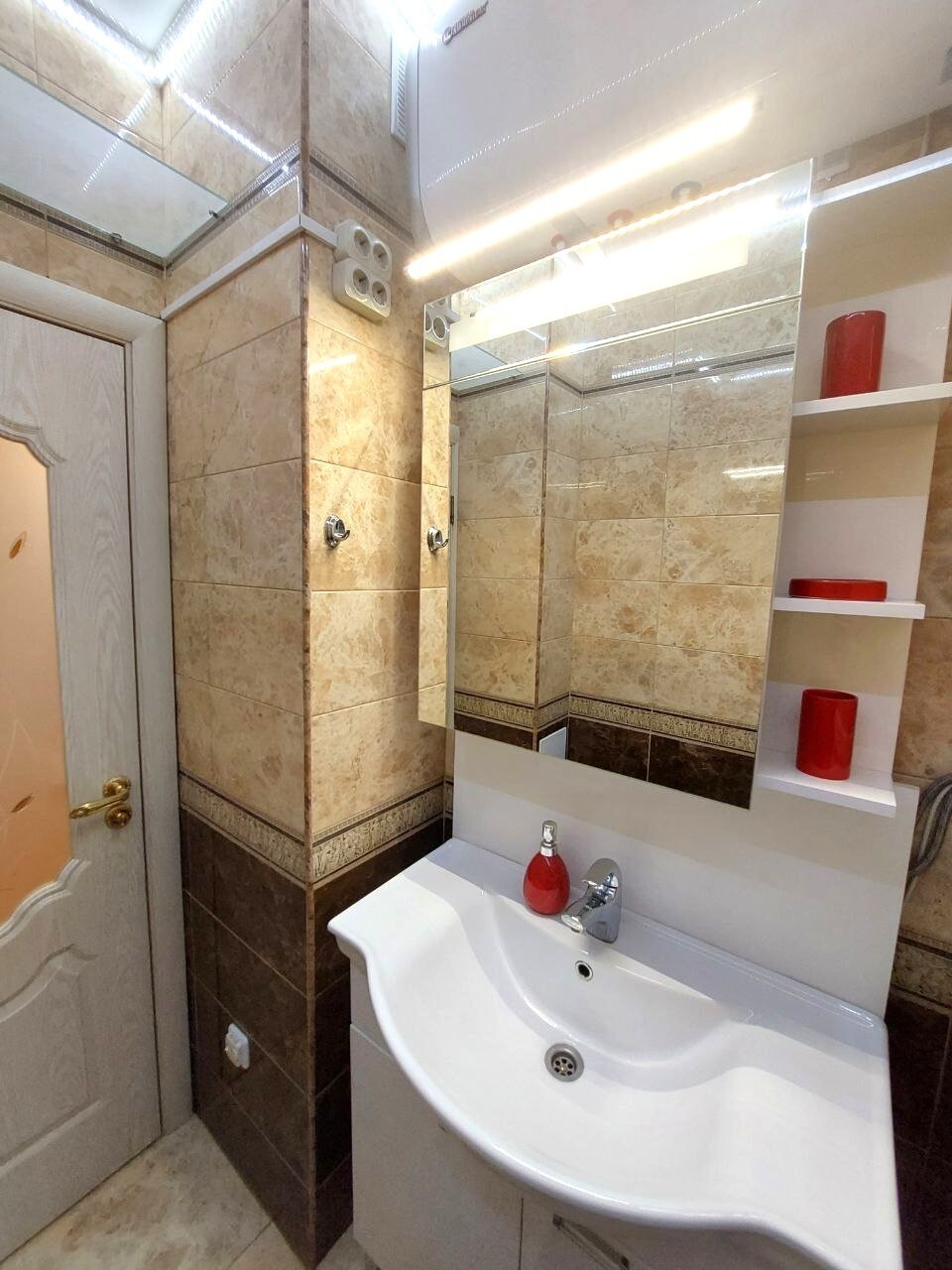 В квартире сделан дизайнерский ремонт из качественных материалов, интерьер продуман до мелочей. Атмосфера лёгкая и уютная, а из окон открываются виды на Волгу и город.