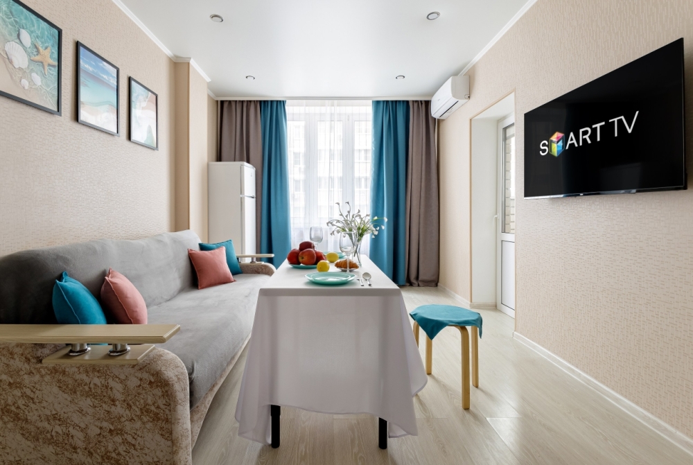 Квaртира идеально подойдет для тех, кто планирует семейный отдых. Есть вся необходимая посуда для приготовления и приёма пищи. Во дворе детские площадки.