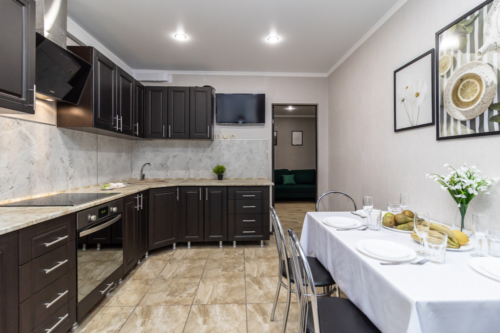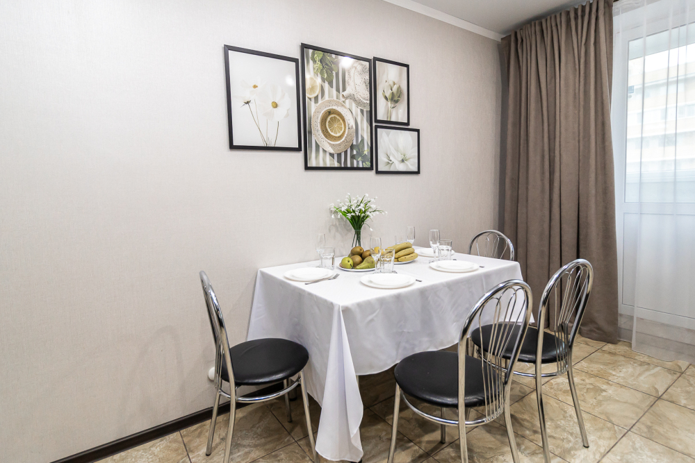 Квaртира идеально подойдет для тех, кто планирует семейный отдых. Есть вся необходимая посуда для приготовления и приёма пищи. Во дворе детские площадки.