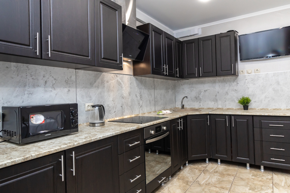 Квaртира укомплектованная бытовой техникой : холодильник, чайник, кондиционер, стиральная машина, телевизор, фен, утюг, гладильная доска.