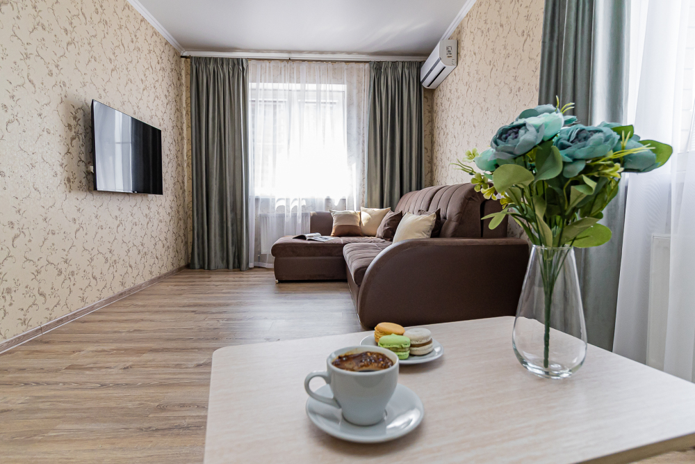 Квaртира идеально подойдет для тех, кто планирует семейный отдых. Есть вся необходимая посуда для приготовления и приёма пищи. Во дворе детские площадки.