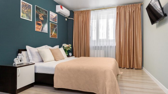 Квaртира укомплектованная бытовой техникой : холодильник, чайник, кондиционер, стиральная машина, телевизор, фен, утюг, гладильная доска.