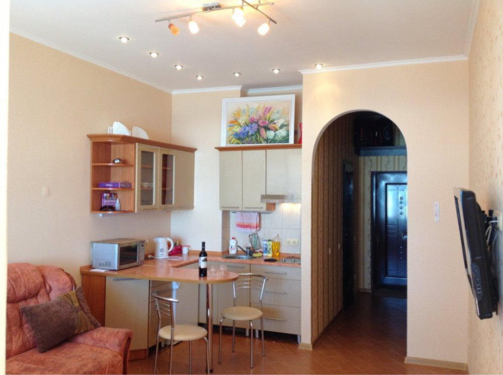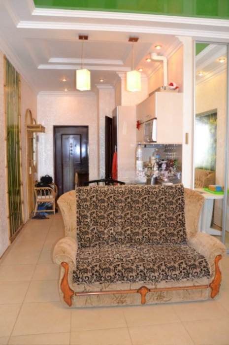 Апартаменты оформлены по специально разработанному оригинальному дизайнерскому проекту, где особое внимание привлекают многоуровневые натяжные потолки. Система освещения комнат погружает Вас в атмосферу домашнего уюта и комфорта. Приятная цветовая гамма стен и всех элементов дизайна позволит Вам чувствовать летнее настроение даже зимой, окружая радостью живой природы.