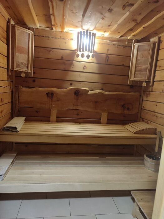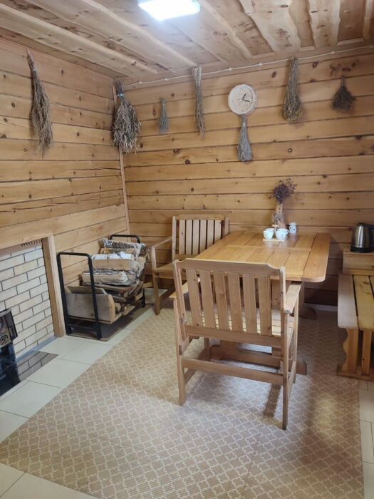 Есть сибирская банька на дровах с алтайским чаем и мёдом.
