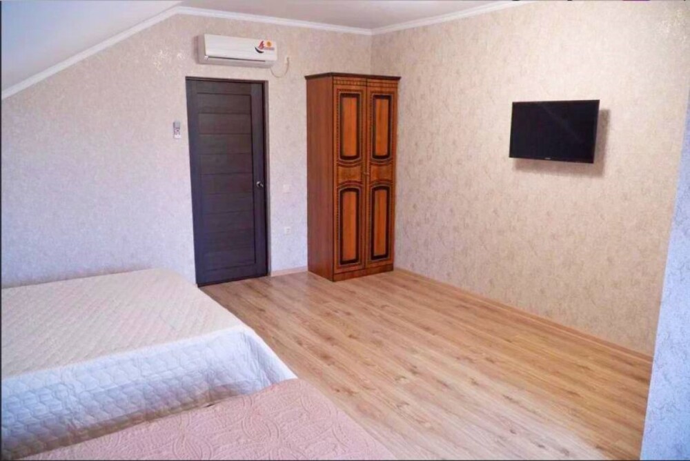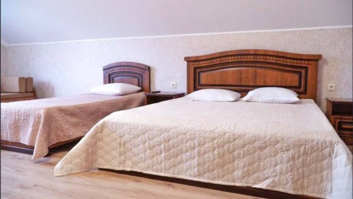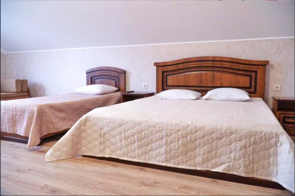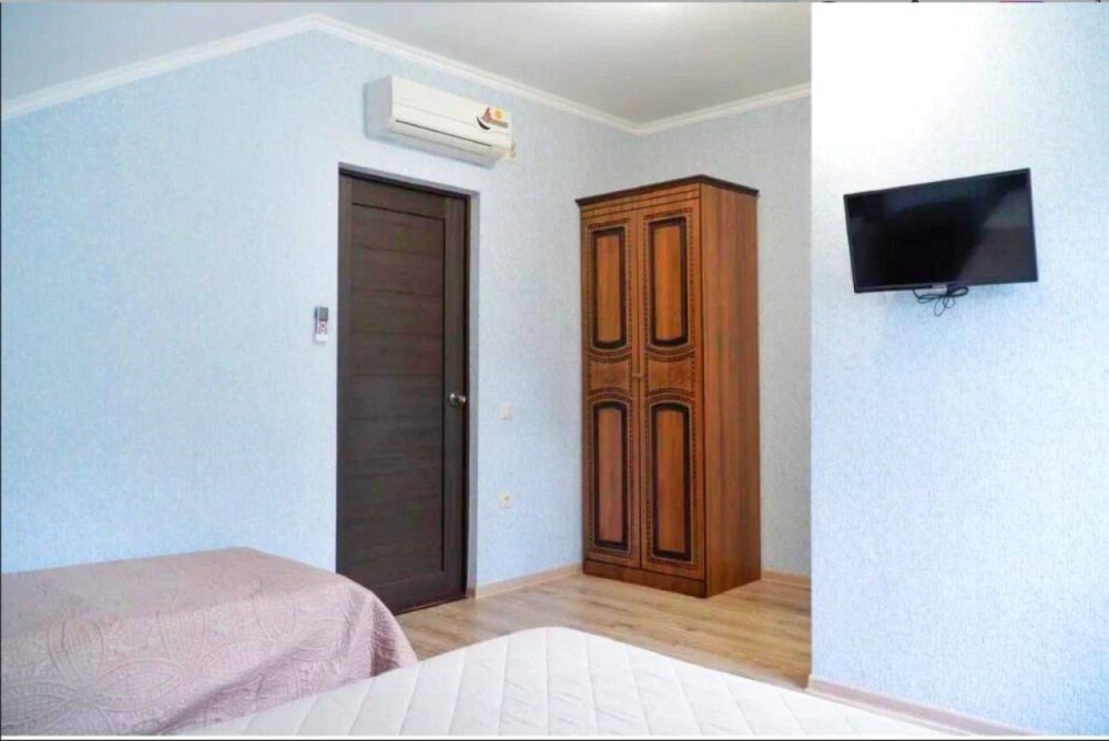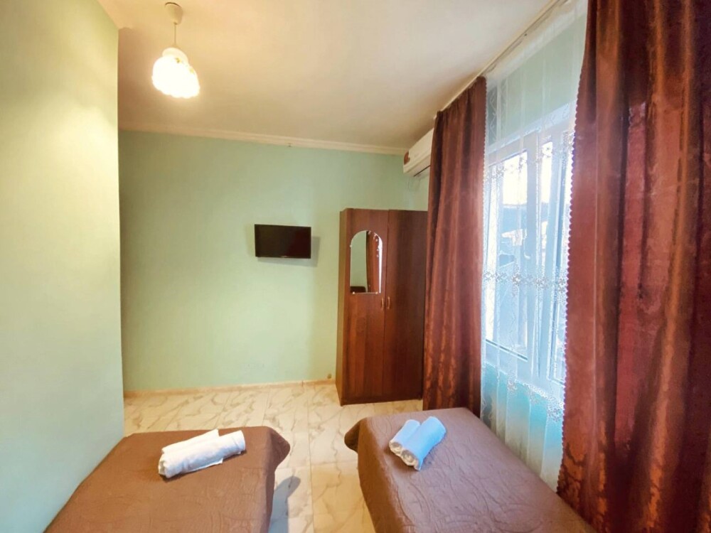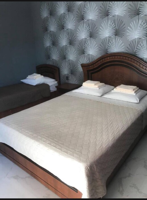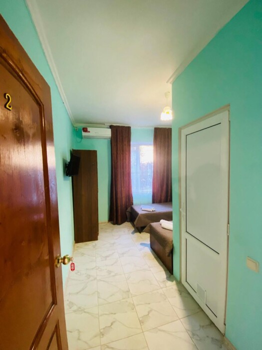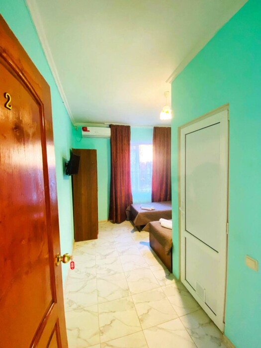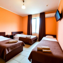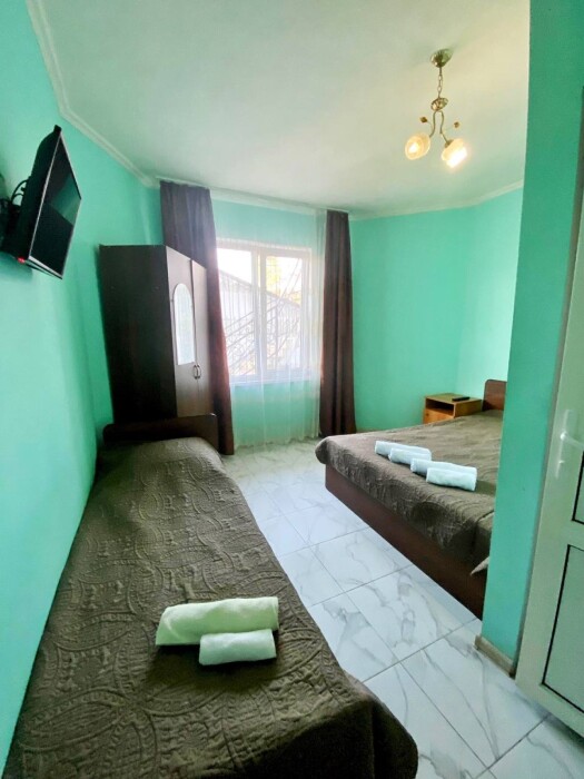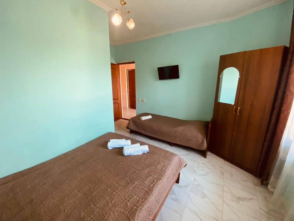 В номере есть двуспальная и односпальная кровать, постельное белье, полотенца, телевизор и кондиционер. Санузел расположен в номере.